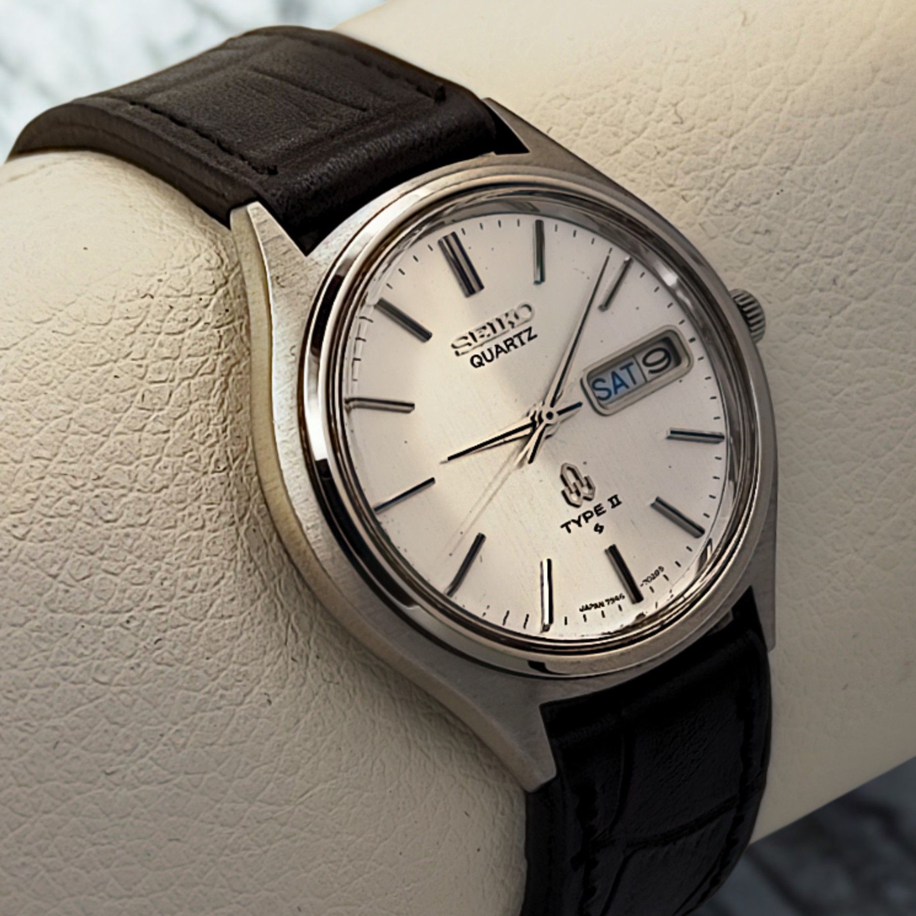 Vintage - Herrenuhr - Seiko Typ II - 7456 7010 - Vintage Herrenuhr Diese Seiko Typ II - 7456 7010 Vintage Herrenuhr ist ein zeitloses Meisterwerk, das klassisches Design und edle Materialien kombiniert. Diese Herrenuhr ist ein wahrer Schatz für Liebhaber und Sammler. Das elegante silberne Zifferblat... Mehr