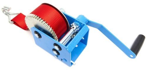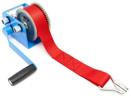 • Premium 1500kg Seilwinde Handwinde mit 8 Meter Gurt Blau für PKW Anhänger