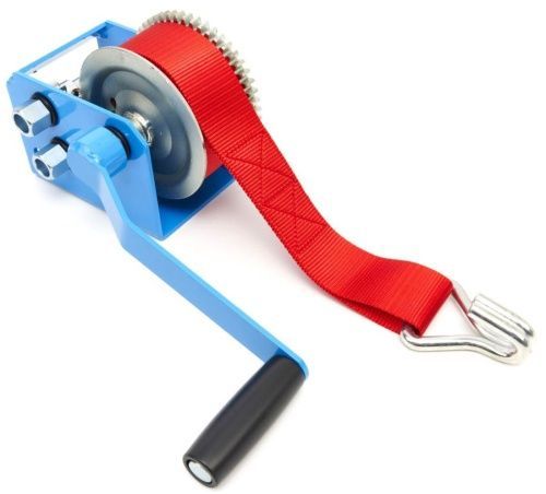 Seilwinde Handwinde blau mit Gurt rot 1130kg 6m mechanische Winde Gurtwinde
