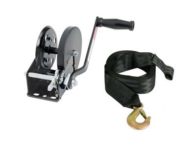 • Premium 1500kg Seilwinde Handwinde mit 8 Meter Gurt Schwarz für PKW Anhänger