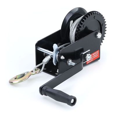 • Handwinde Anhänger Seilwinde Schwarz mit 10 Meter Stahlseil 900 kg