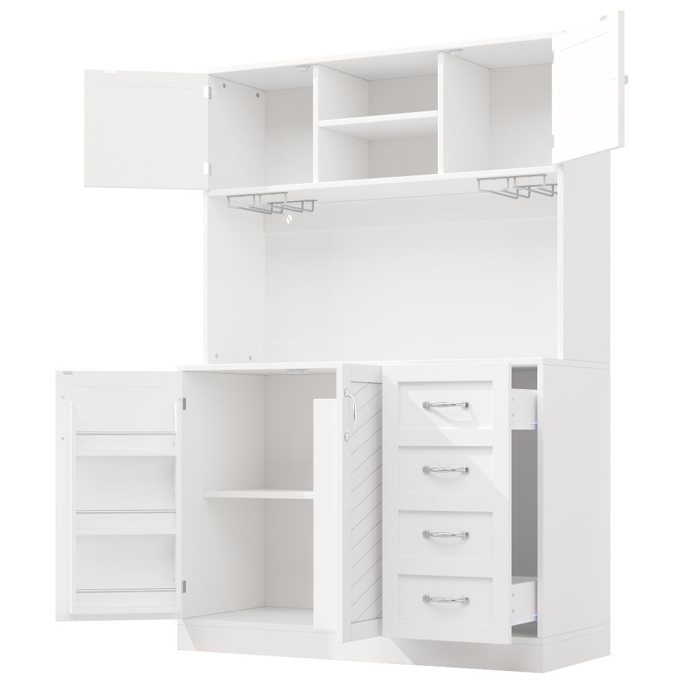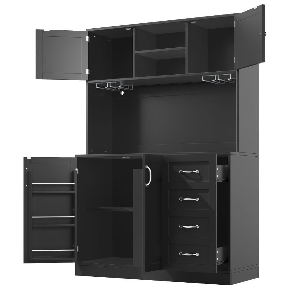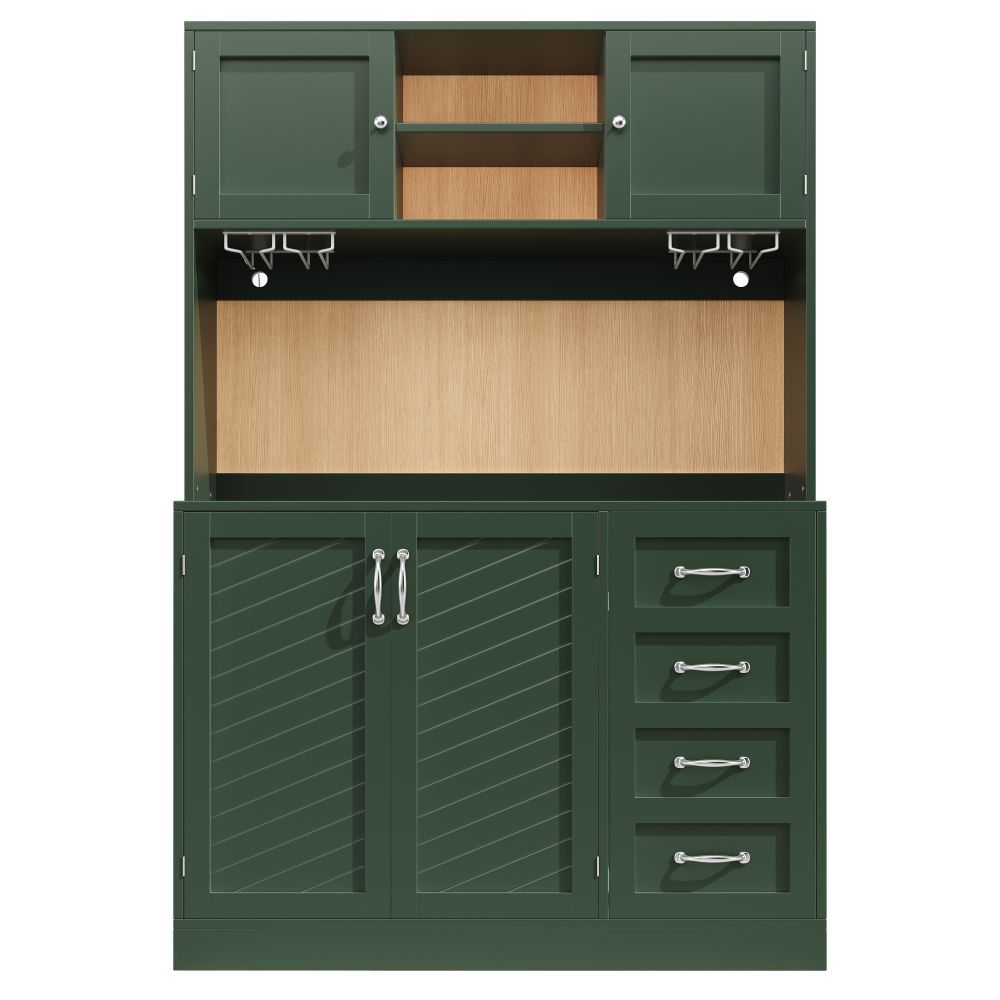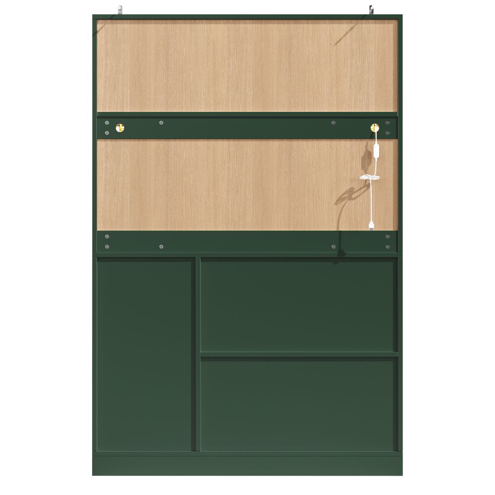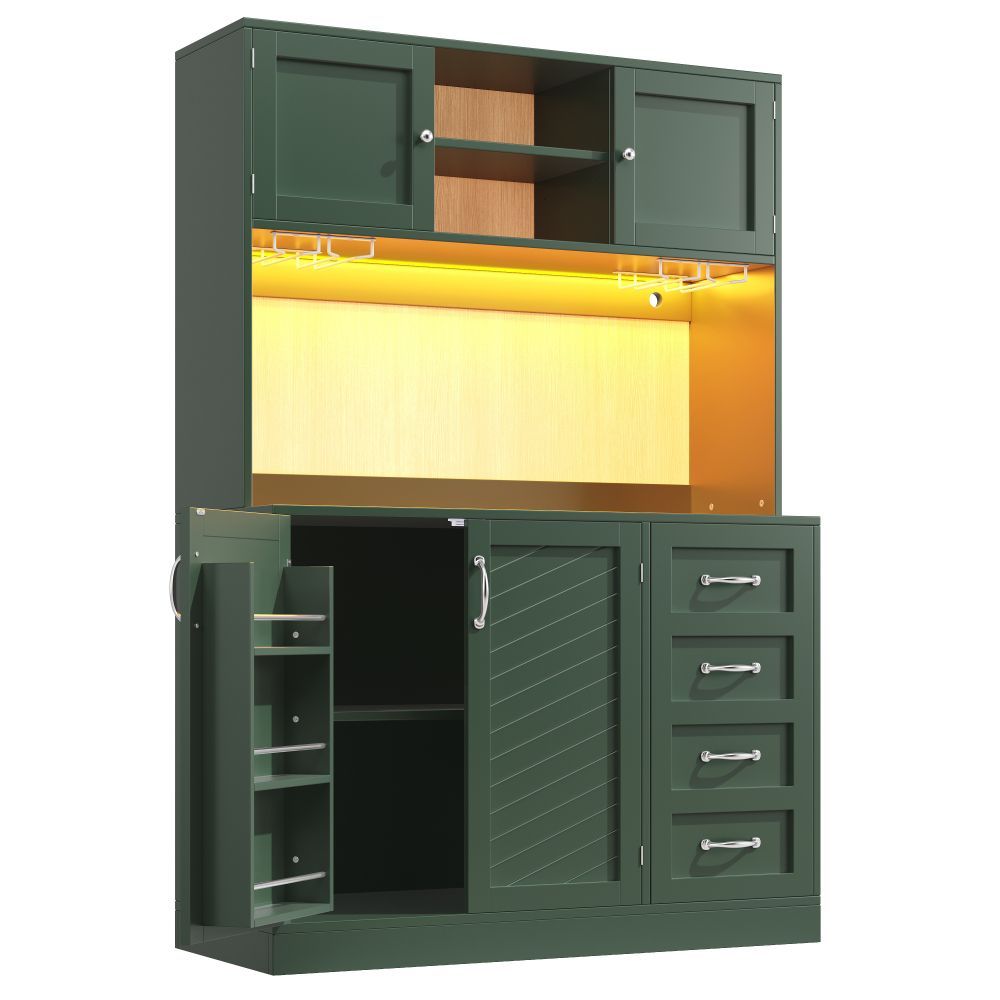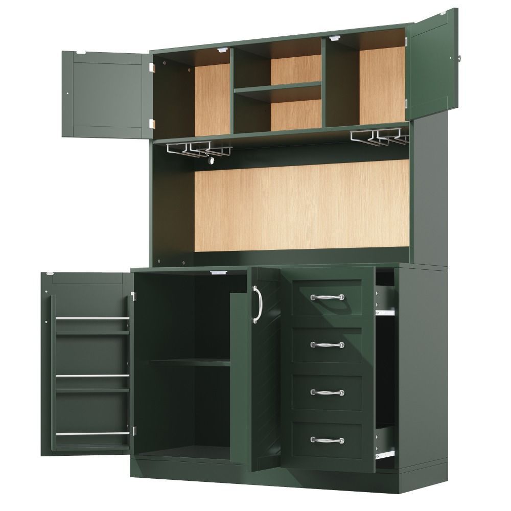 Dieses moderne Sideboard aus MDF vereint Stauraum und stilvolles Design. Mit LED-Beleuchtung, Flaschenregal und Getränkehaltern ist es ideal für Küche, Esszimmer oder Wohnbereich. Vier Türen und zwei große Schubladen bieten viel Platz für Geschirr, Gläser und Vorräte. Die Farbkombination in Grün, Schwarz und Weiß setzt einen eleganten Akzent.