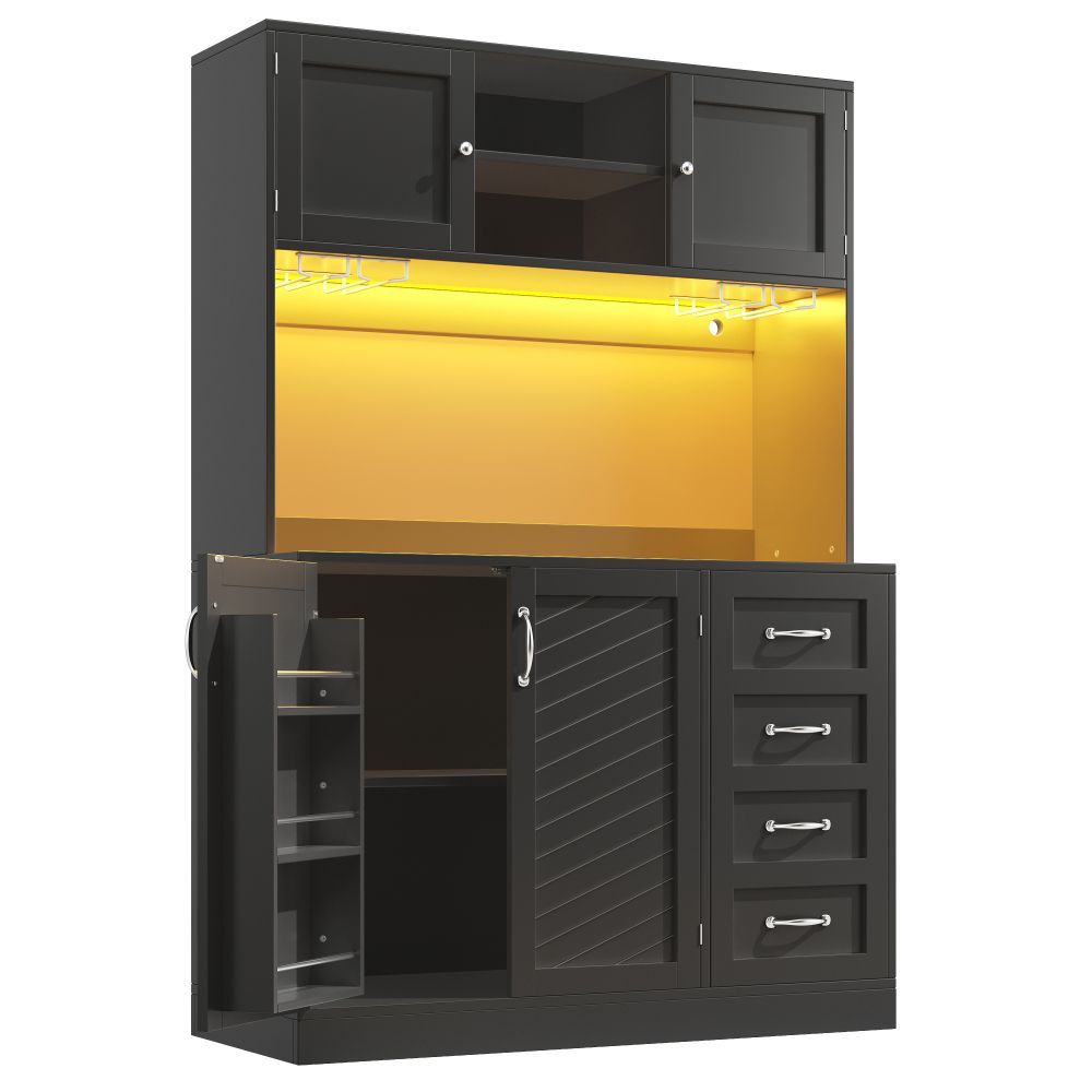 Seitenboard Küchenschrank Aufbewahrungsschrank LED 4 Türen 2 Schubladen