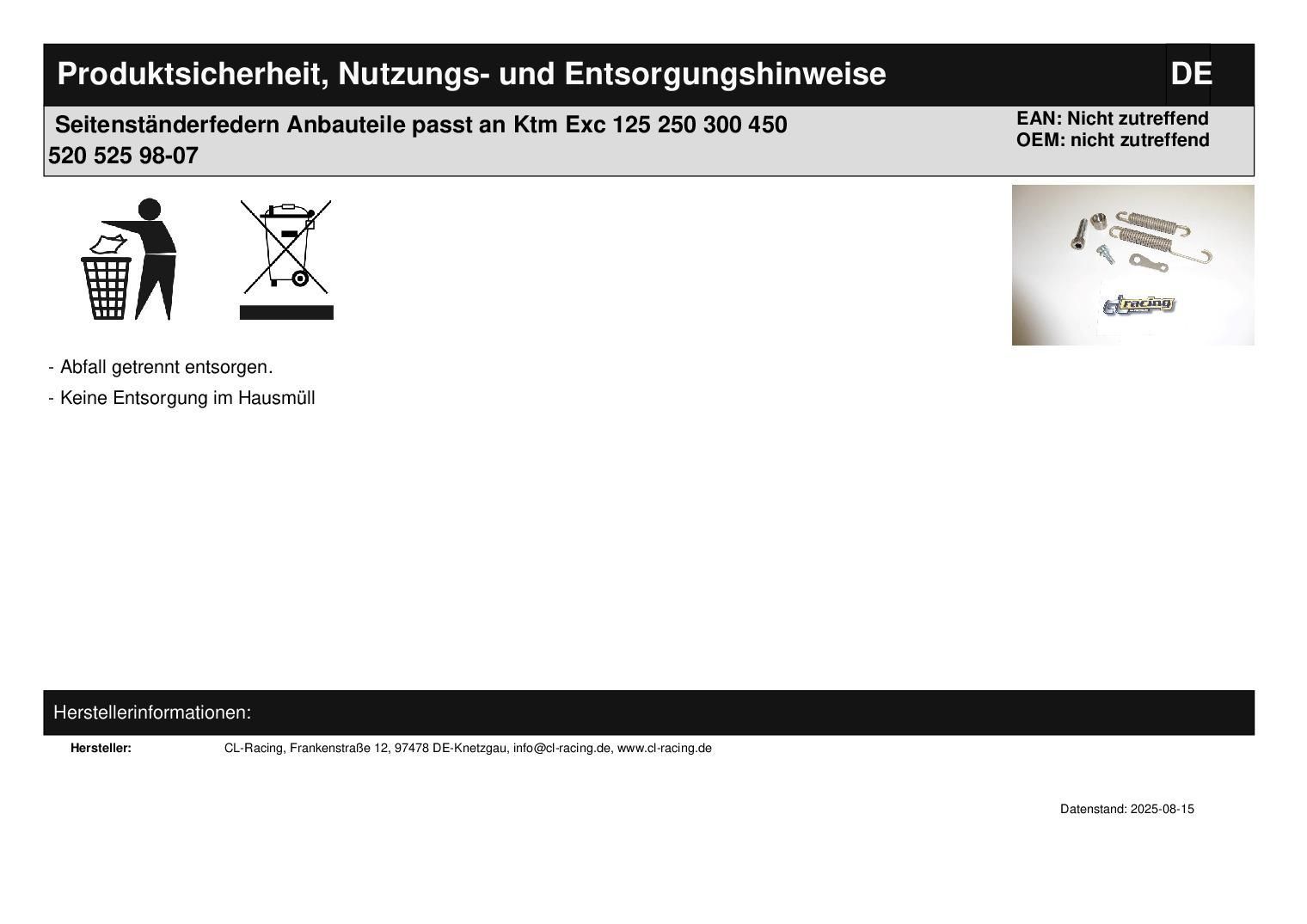 Seitenständerfedern Anbauteile passt an Ktm Exc 125 250 300 450 520 525 98-07