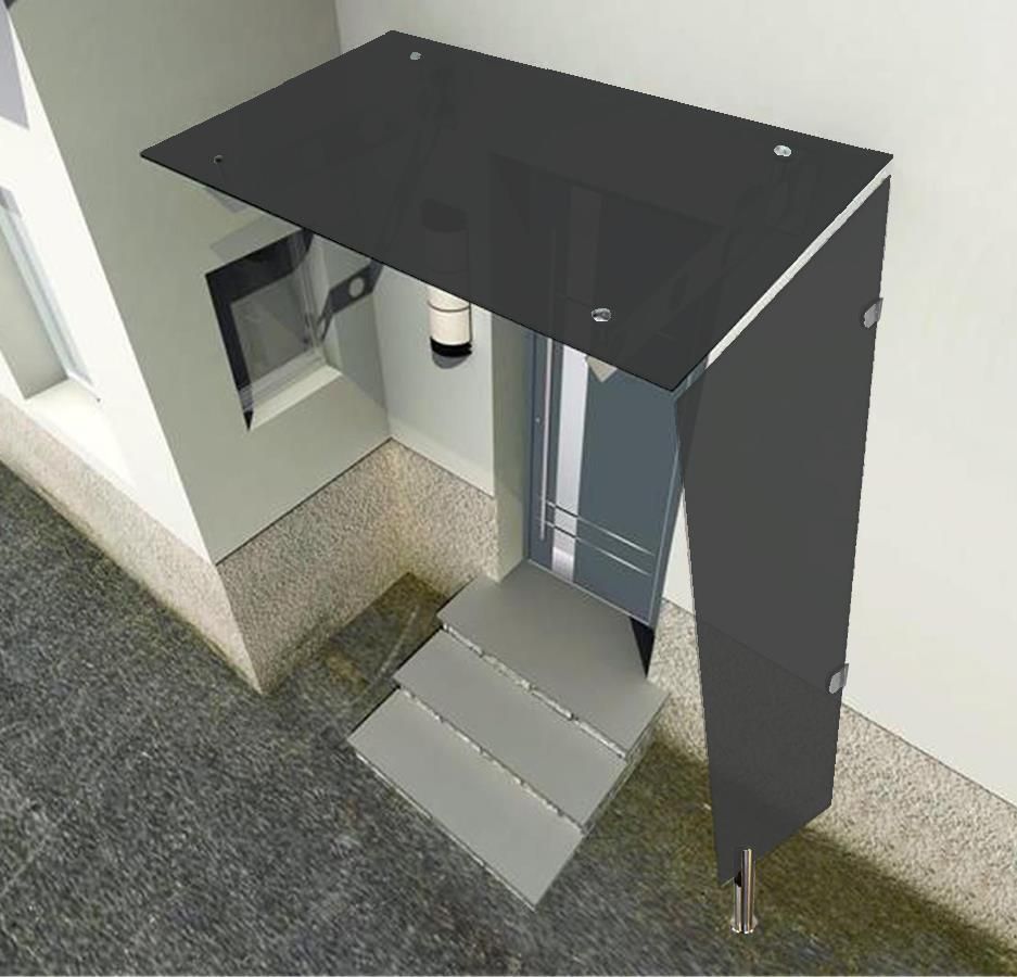 Seitenteil 200x80x60cm 9,54 mm VSG Sicherheitsglas Glasvordach Grauglas Trapezform