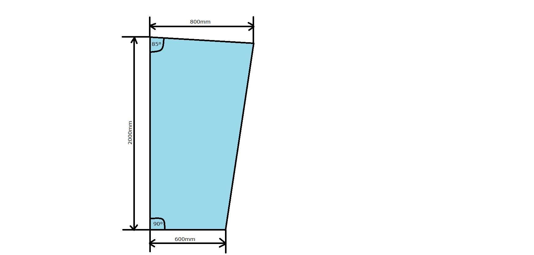 Seitenteil 200x80x60cm 9,54 mm VSG Sicherheitsglas Glasvordach Satiniert Trapezform