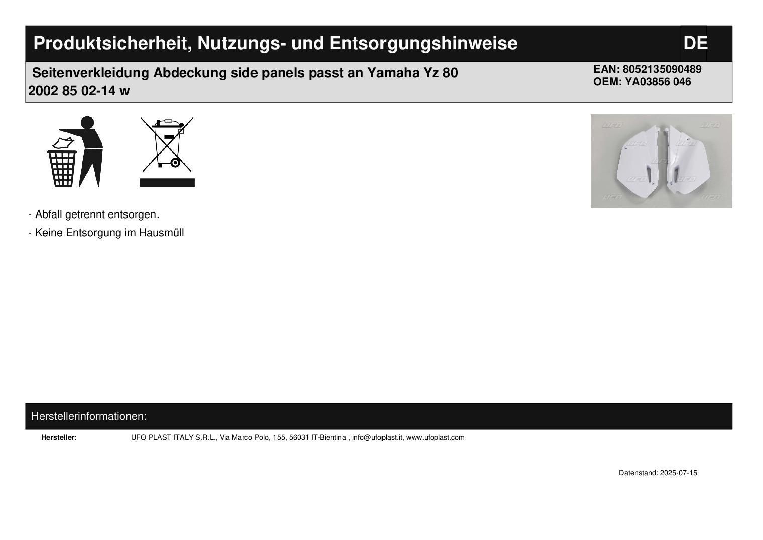 Seitenverkleidung Abdeckung side panels passt an Yamaha Yz 80 2002 85 02-14 w