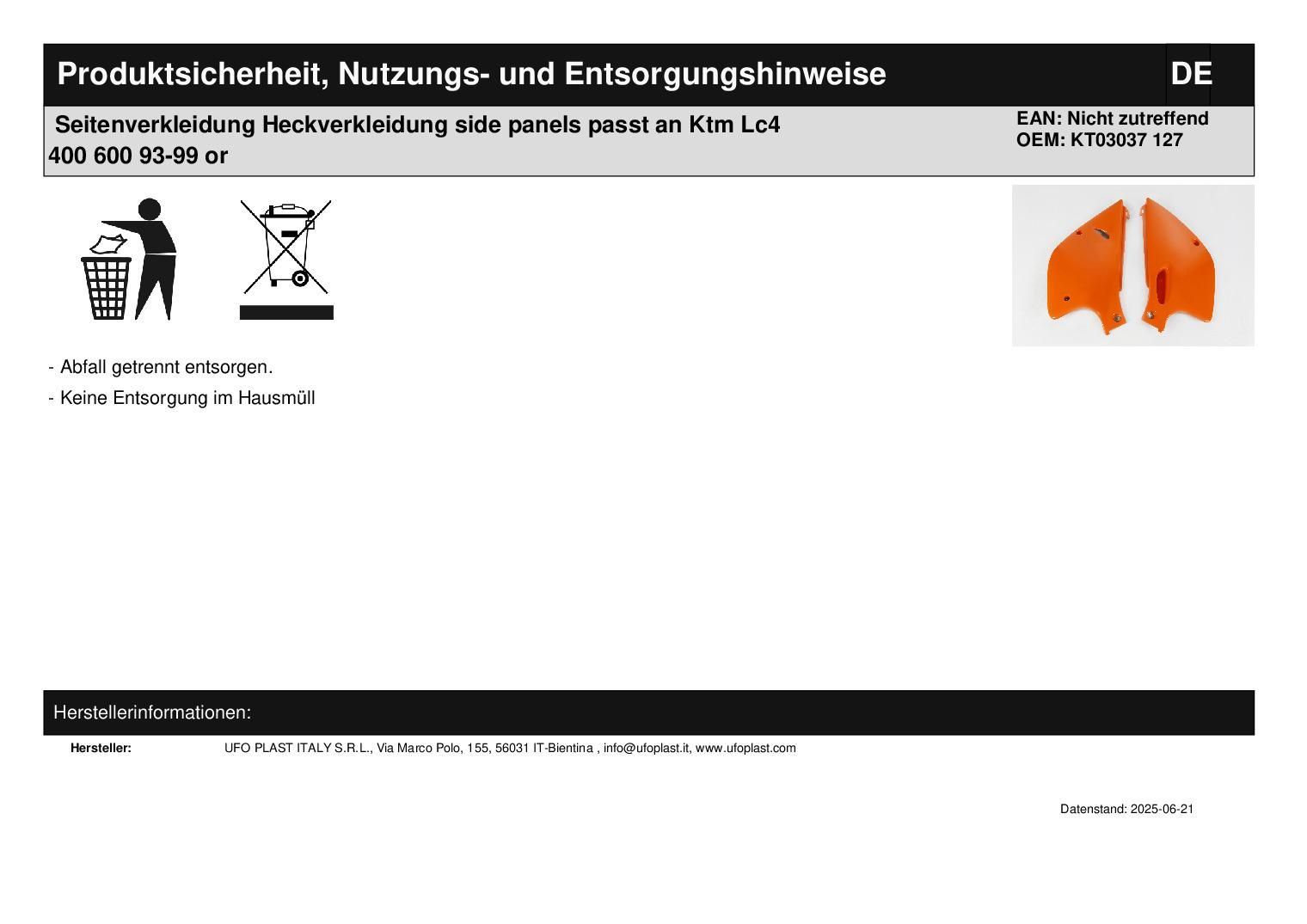 Seitenverkleidung Heckverkleidung side panels passt an Ktm Lc4 400 600 93-99 or