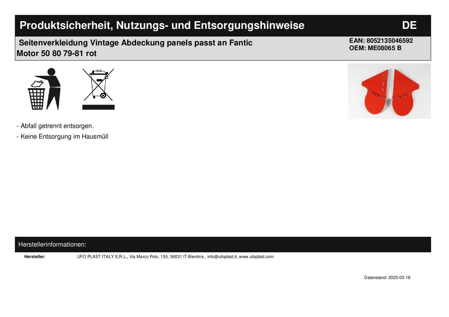 Seitenverkleidung Vintage Abdeckung panels passt an Fantic Motor 50 80 79-81 rot