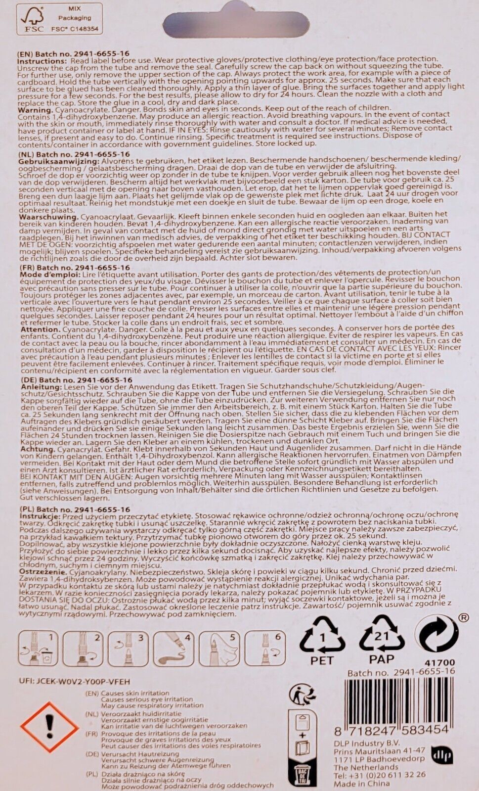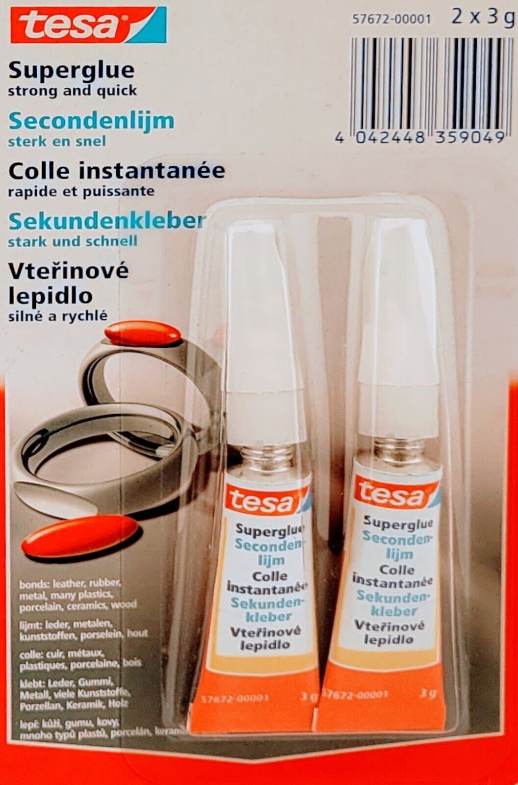 Tesa Flüssig 2x3 g, Super Glue flüssig 3 x 3 g, Pattex Gel 8 g und Bison Gel 2 x 2