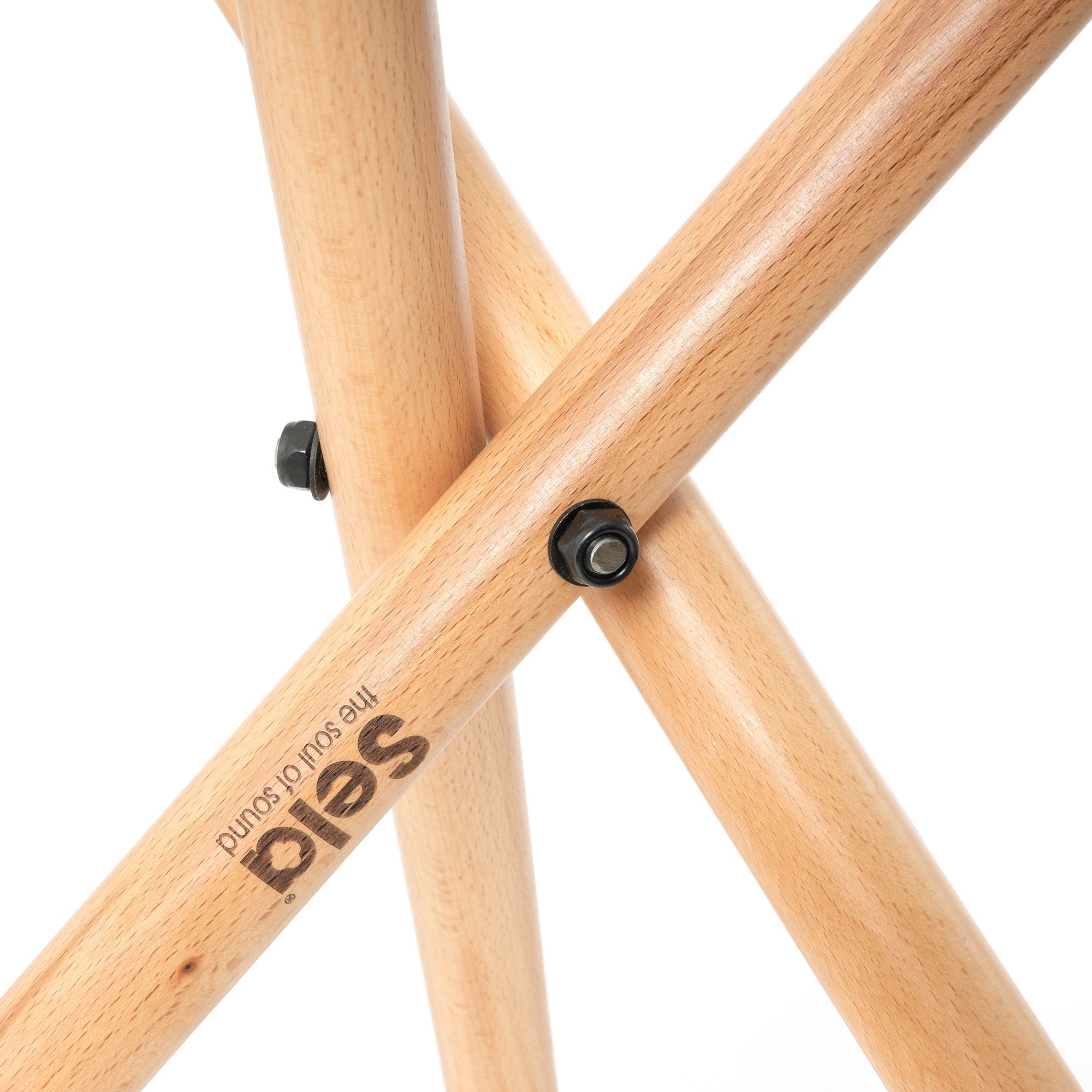 Sela Handpan Ständer Medium Buchen-Holz zusammenklappbar rutschfeste Auflagen aus Schaumstoff Höhe 61 cm (verstellbar)