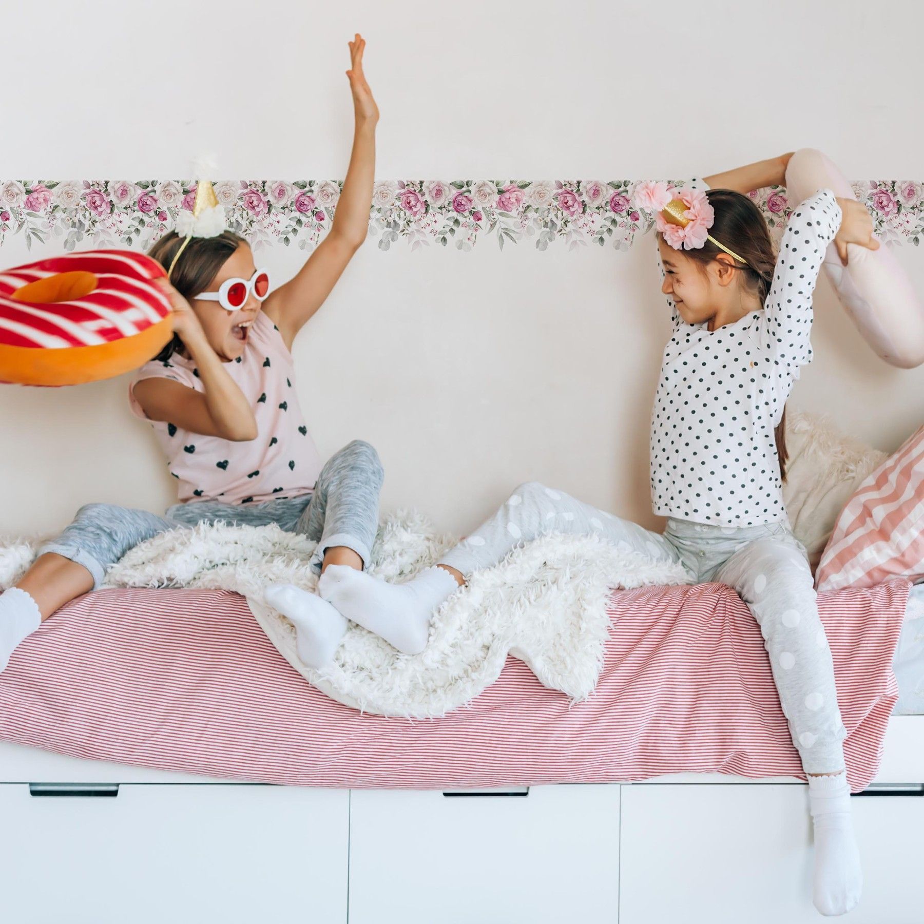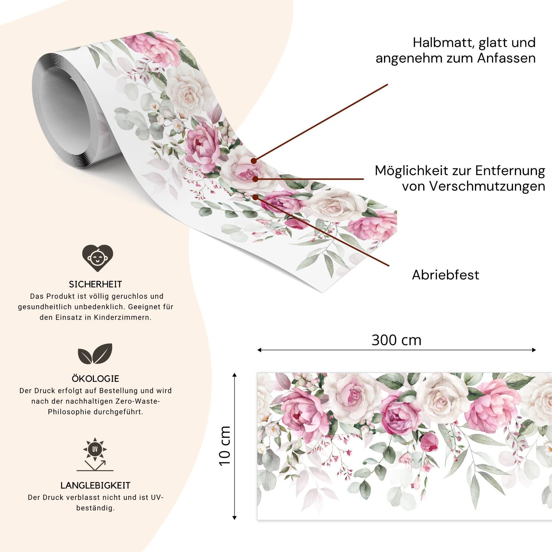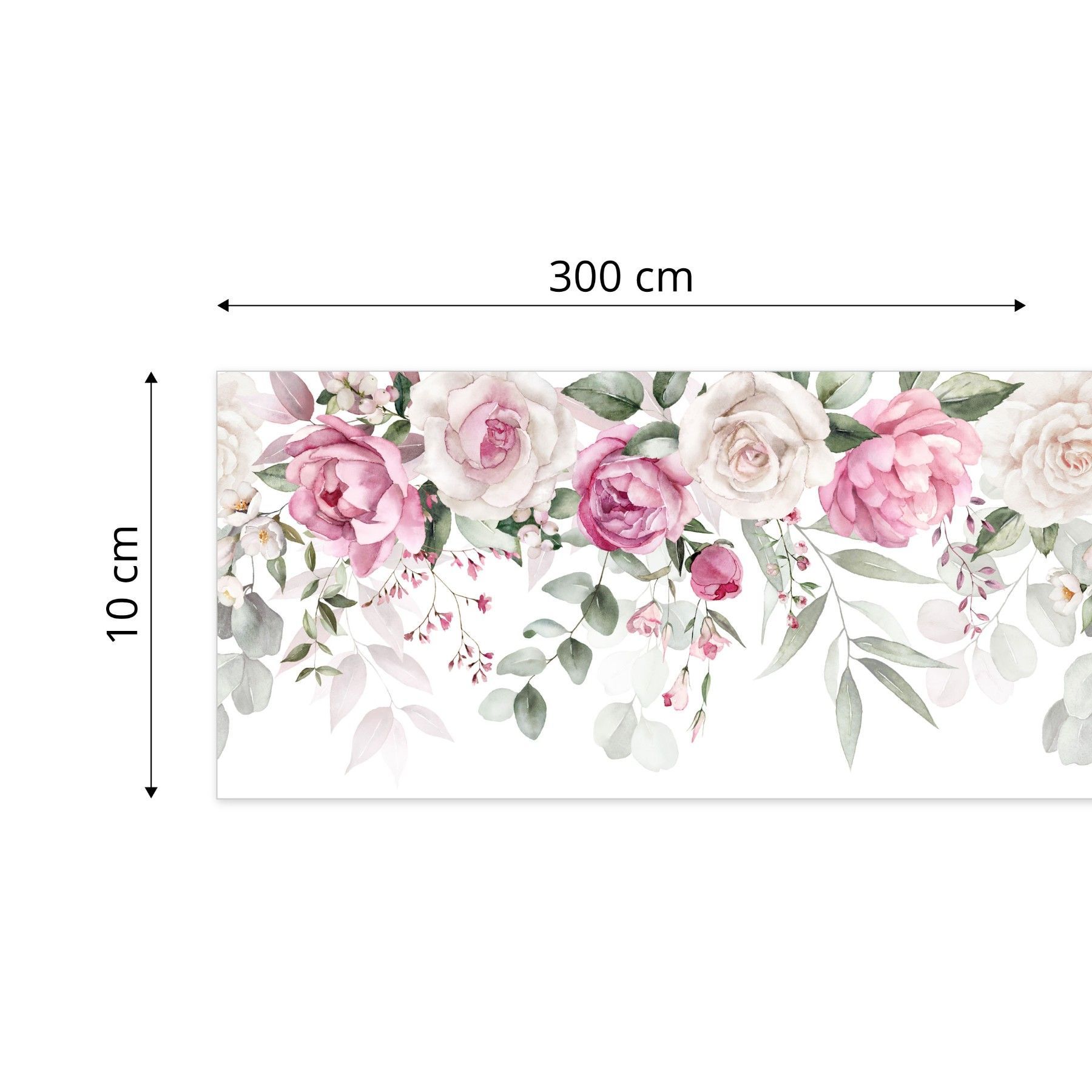 Selbstklebende Bordüre Tapetenbordüre Aquarelle Blumen Rosen Blätter Wandtattoo