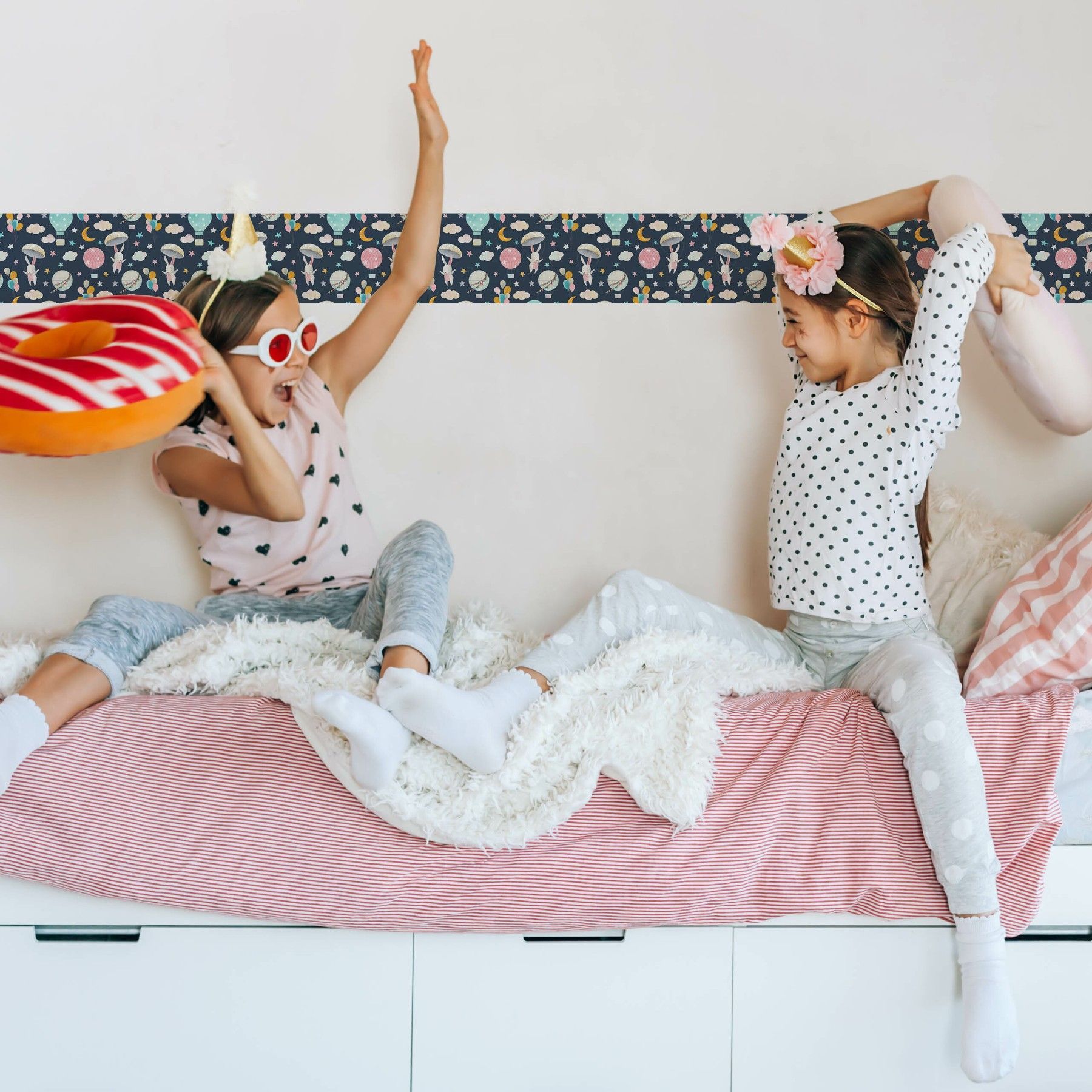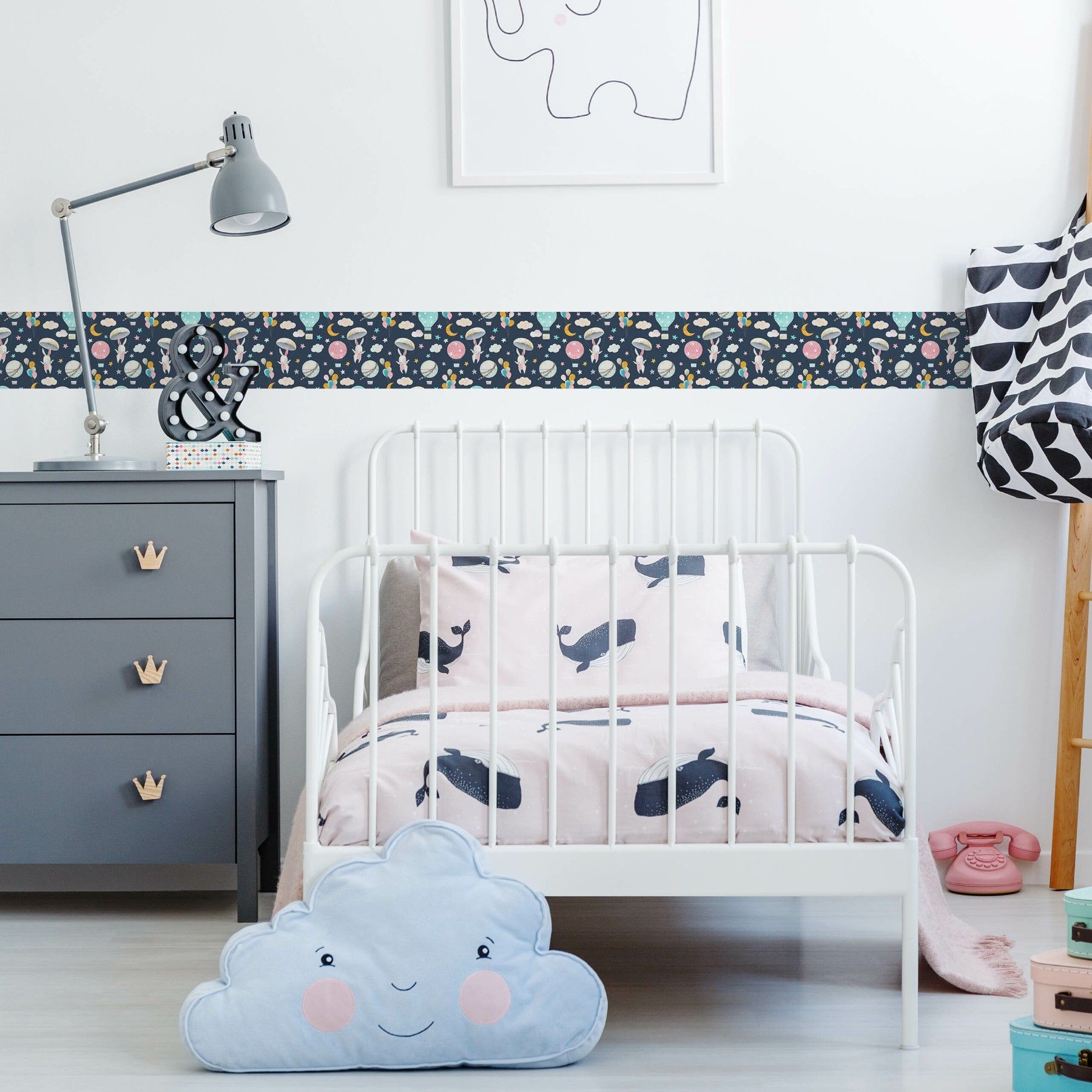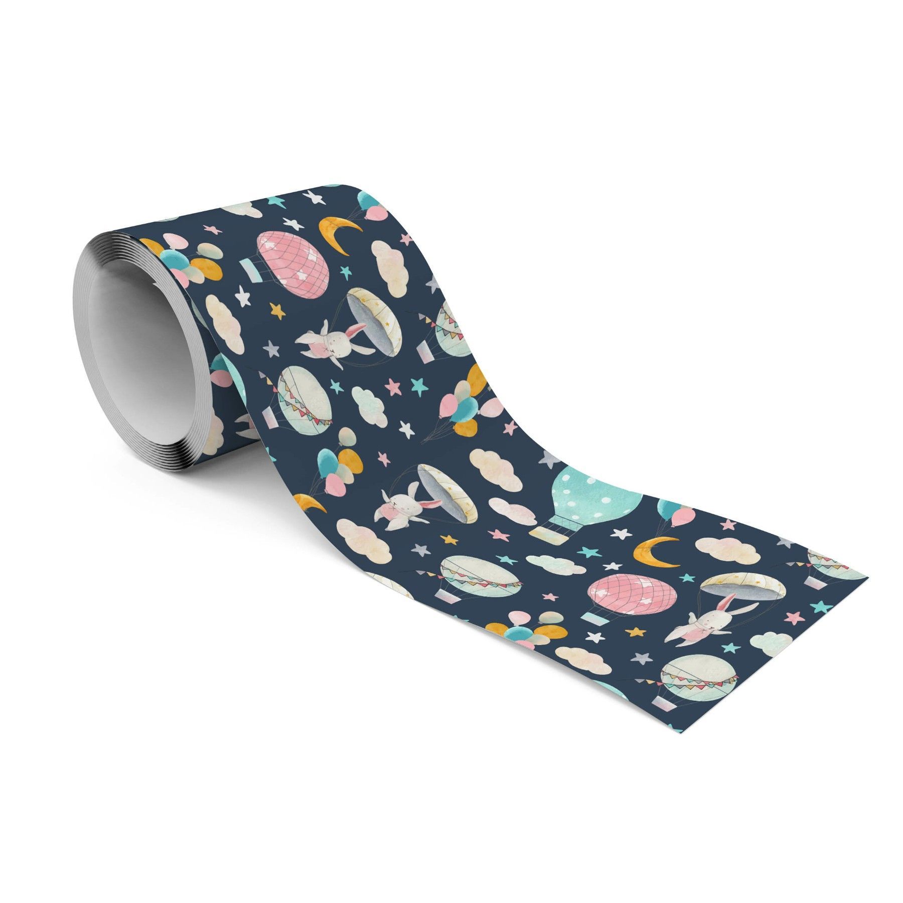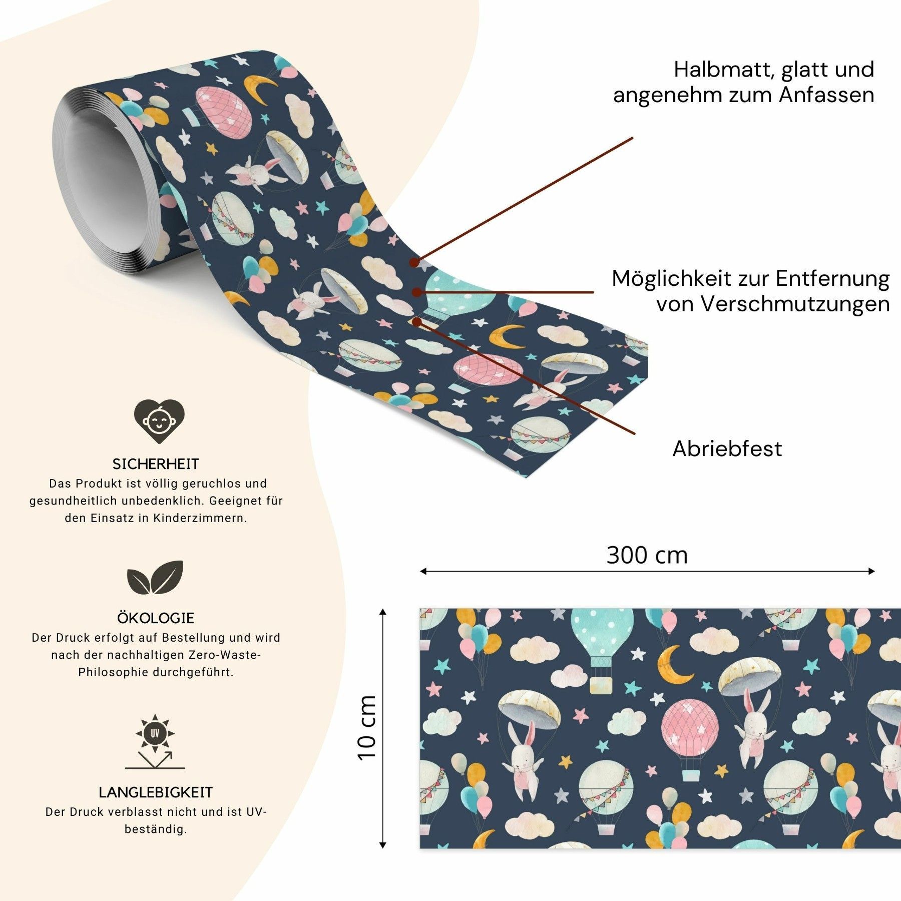 Selbstklebende Bordüre Tapetenbordüre für Kinder Kaninchen Luftballons Wolken Sterne