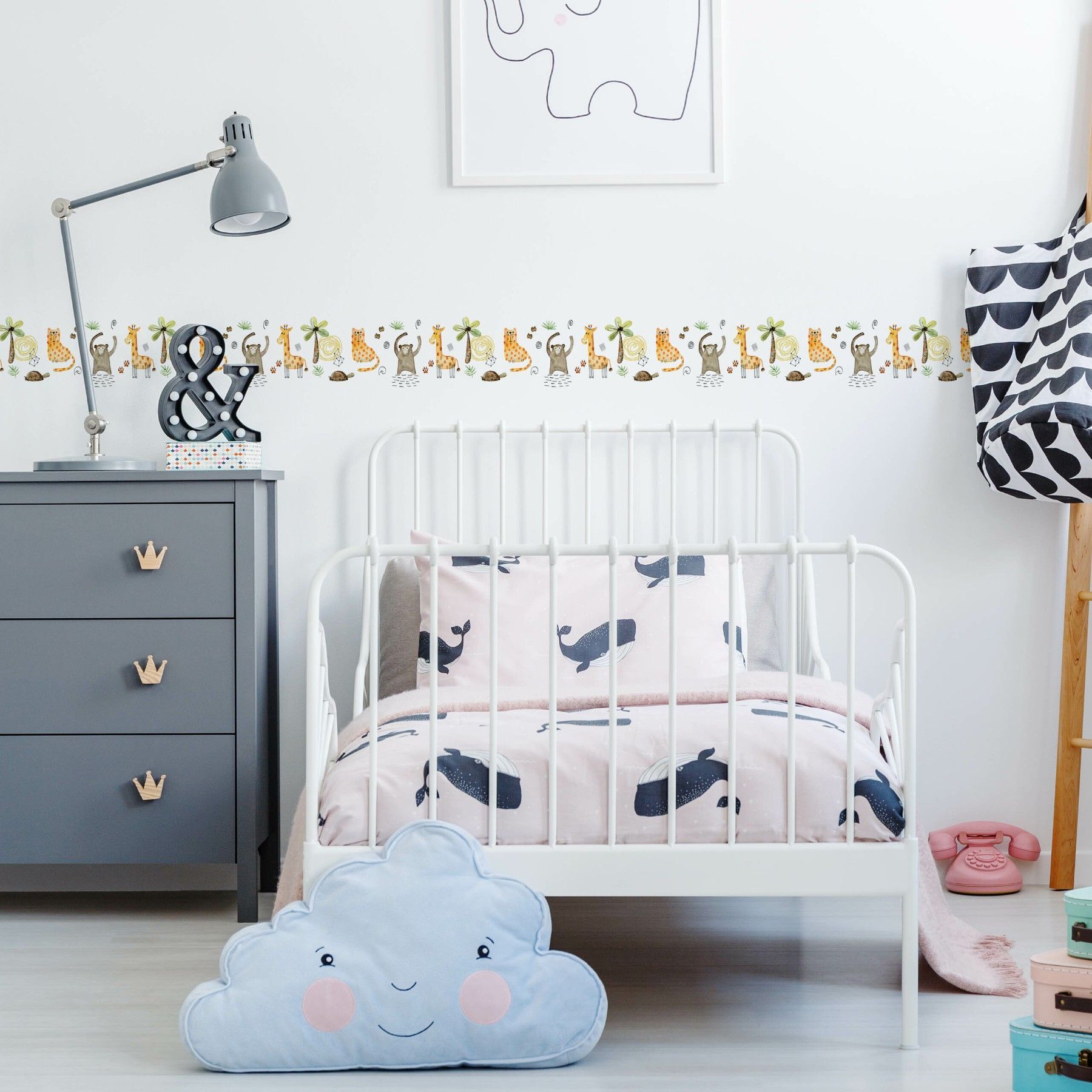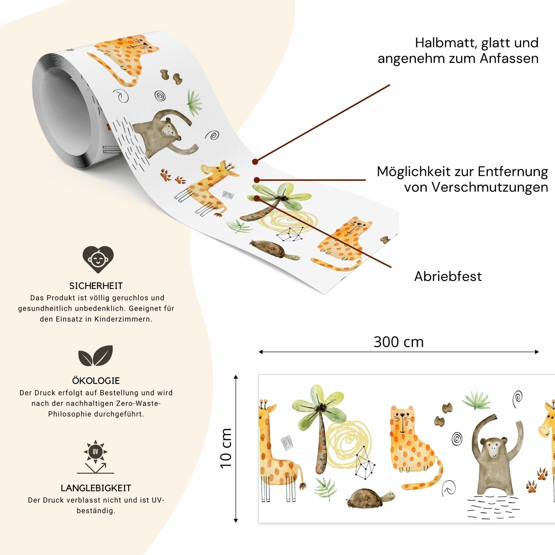 Selbstklebende Bordüre Tapetenbordüre für Kinder wilde TIERE tropische Pflanzen