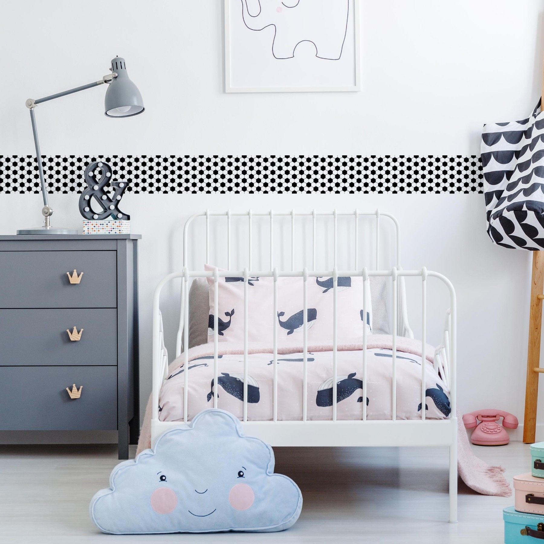 Selbstklebende Bordüre Tapetenbordüre Fußball Muster Wandtattoo für Kinderzimmer