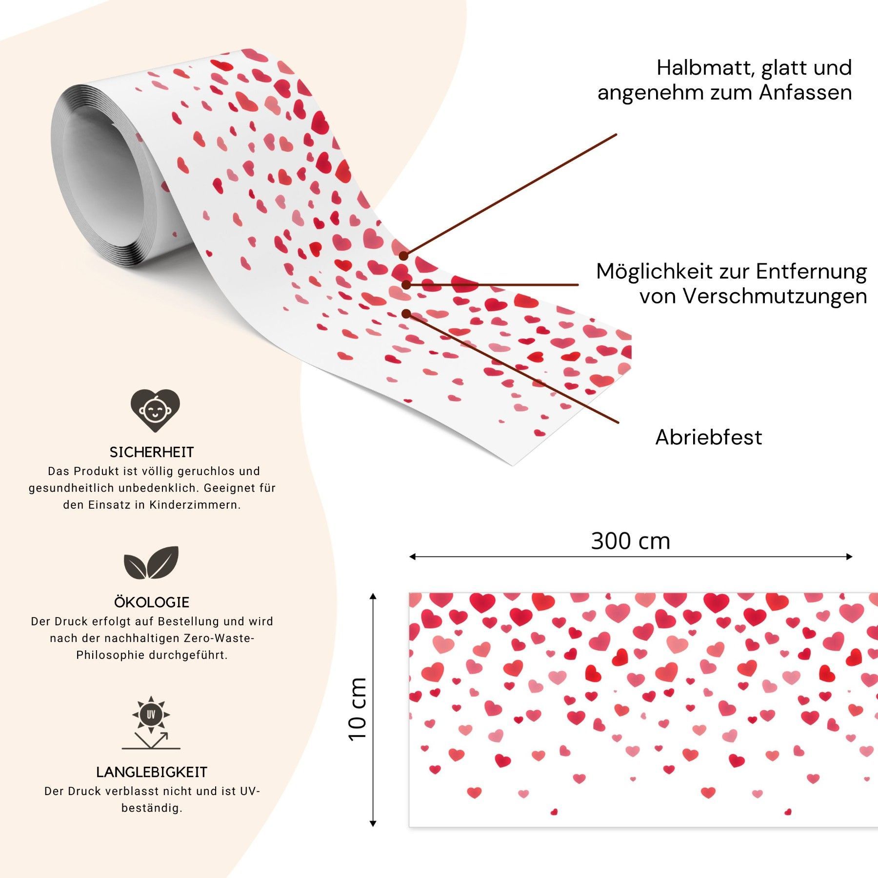 Selbstklebende Bordüre Tapetenbordüre Herzen Muster Wandtattoo für Mädchenzimmer