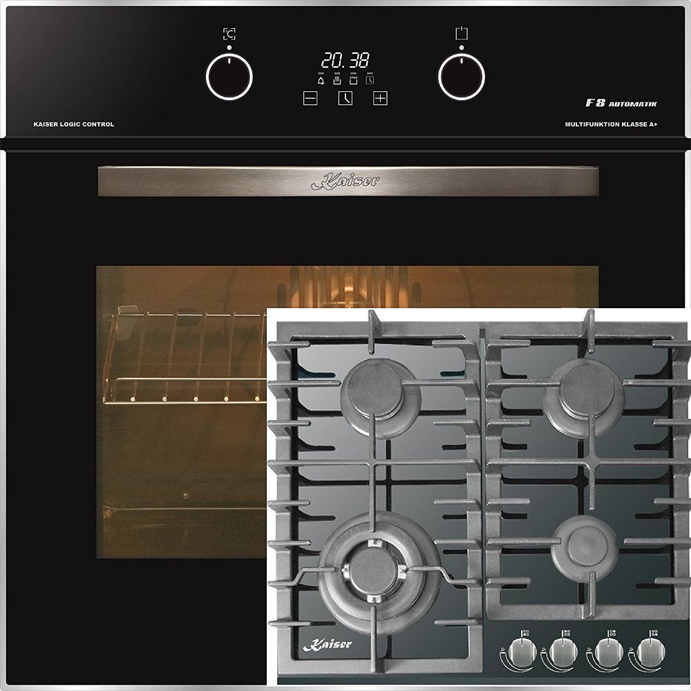 Selbstreinigungs Elektro Einbau Backofen 67L + Glaskeramik Gaskochfeld 60cm