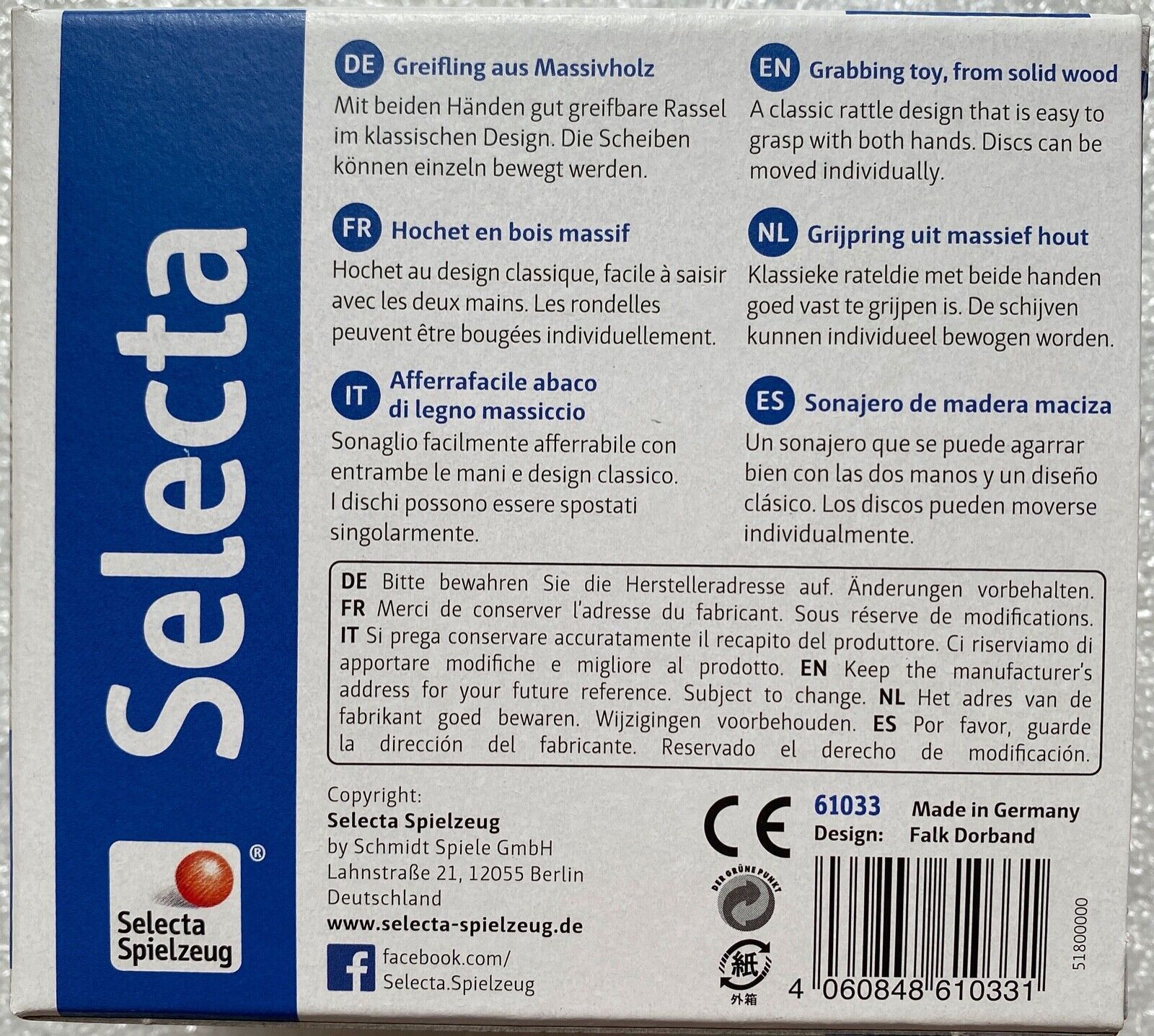 Selecta Babywelt Abacus Greifling Babyspielzeug Rassel Holzspielzeug Neu 61033