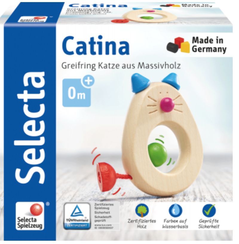 Selecta Babywelt Catina Katzen Greifling Kleinkindspielzeug Holzspielzeug 61005