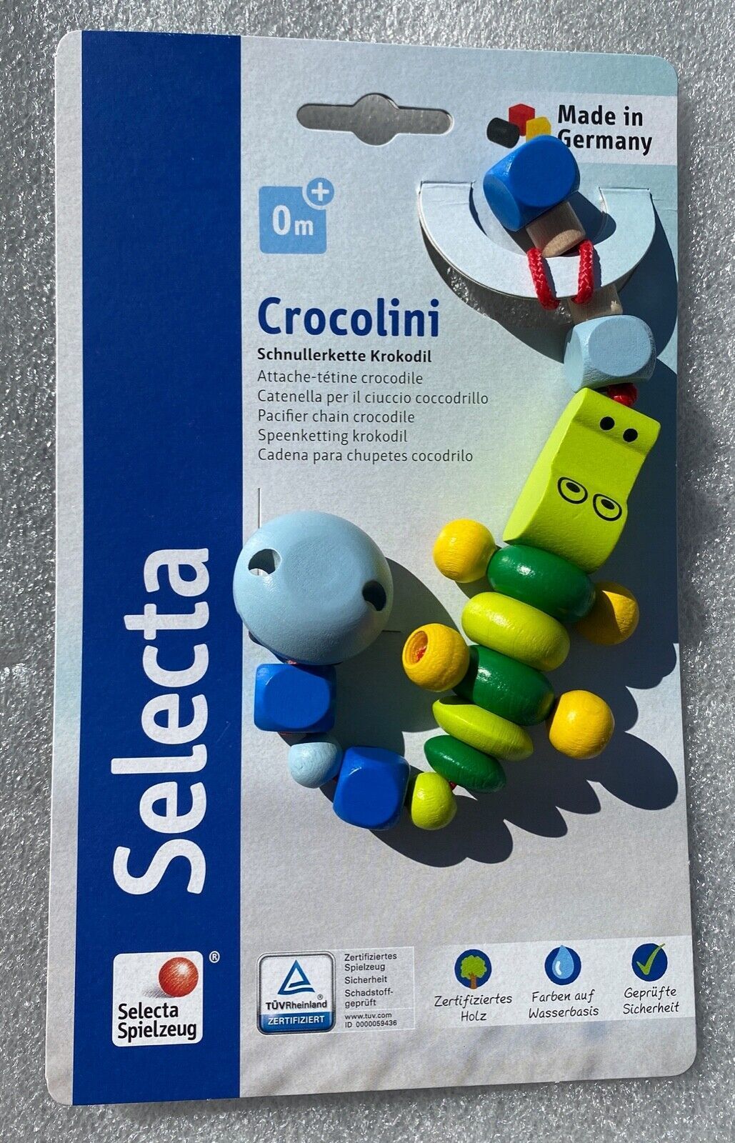Selecta Babywelt Crocolini Schnullerkette Schnuller Kette Holzspielzeug 61019
