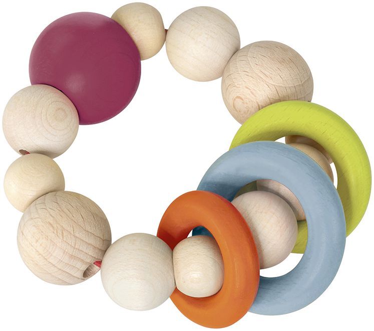 Spieleranzahl: 1 Spieler Altersempfehlung: ab 0 Monaten Greifspaß Kugel mit farbigen Klapperringen. Leise rasselnd faszinieren die drei farbigen Klapperringe. Der Greifspaß Kugel ist schon für die Kleinsten ideal zu greifen. Fördert den Tast- und Greifsinn und die bewusste Wahrnehmung von Farben und