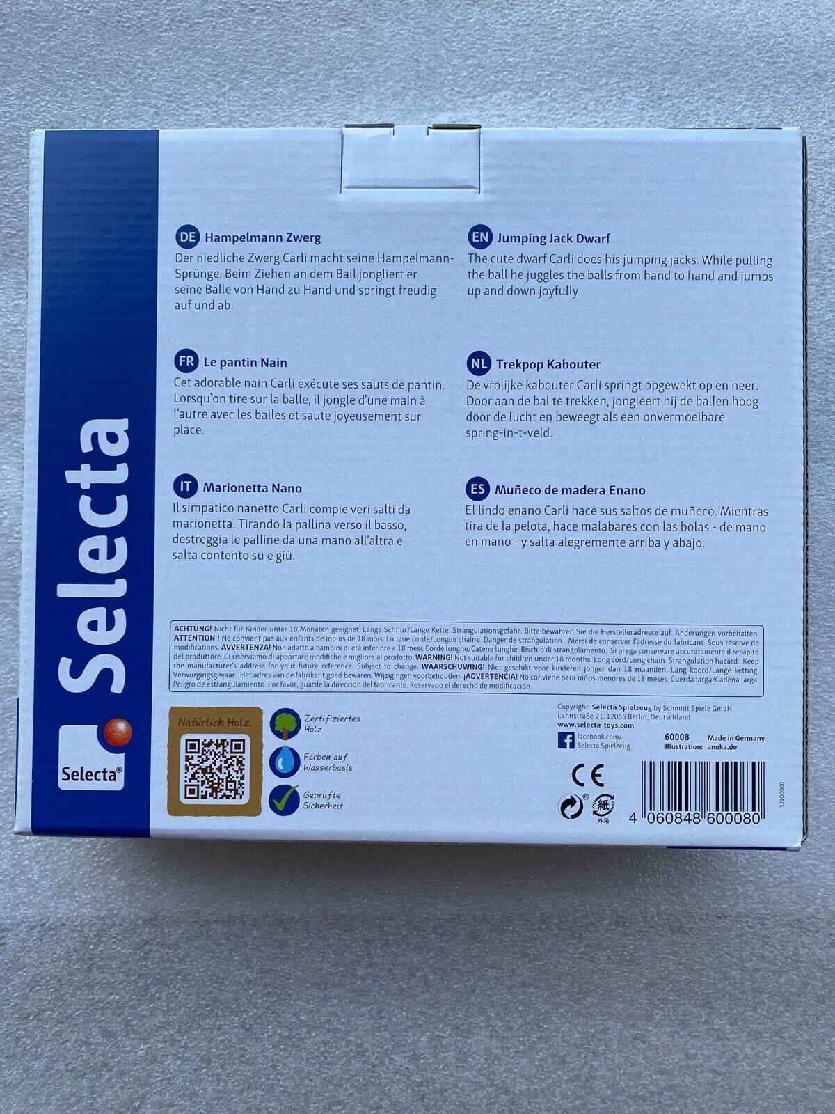 Selecta Carli Hampelmann Zwerg Babyspielzeug Kleinkindspiel Holzspielzeug 60008