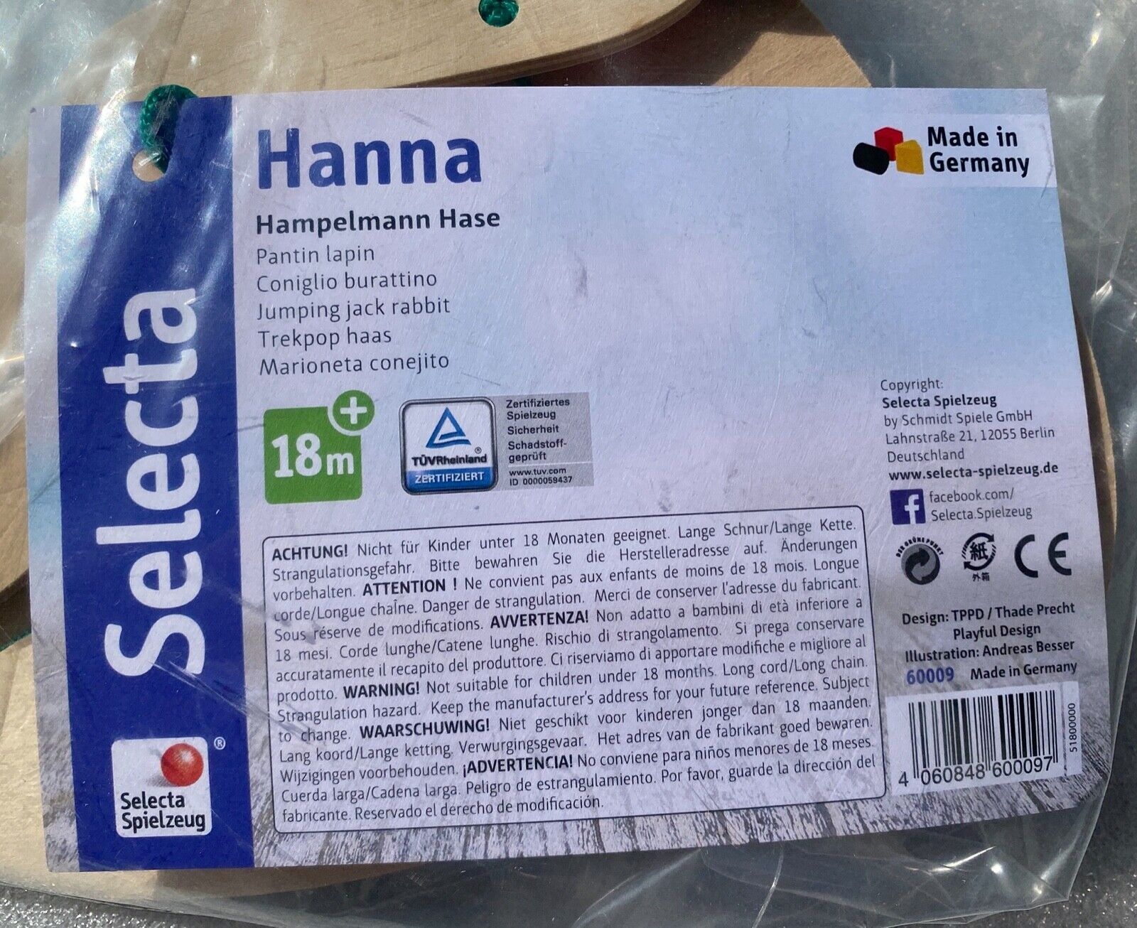 Selecta Kinderzimmer Hanna Hampelmann Hase Holzspielzeug Babyspielzeug Neu 60009
