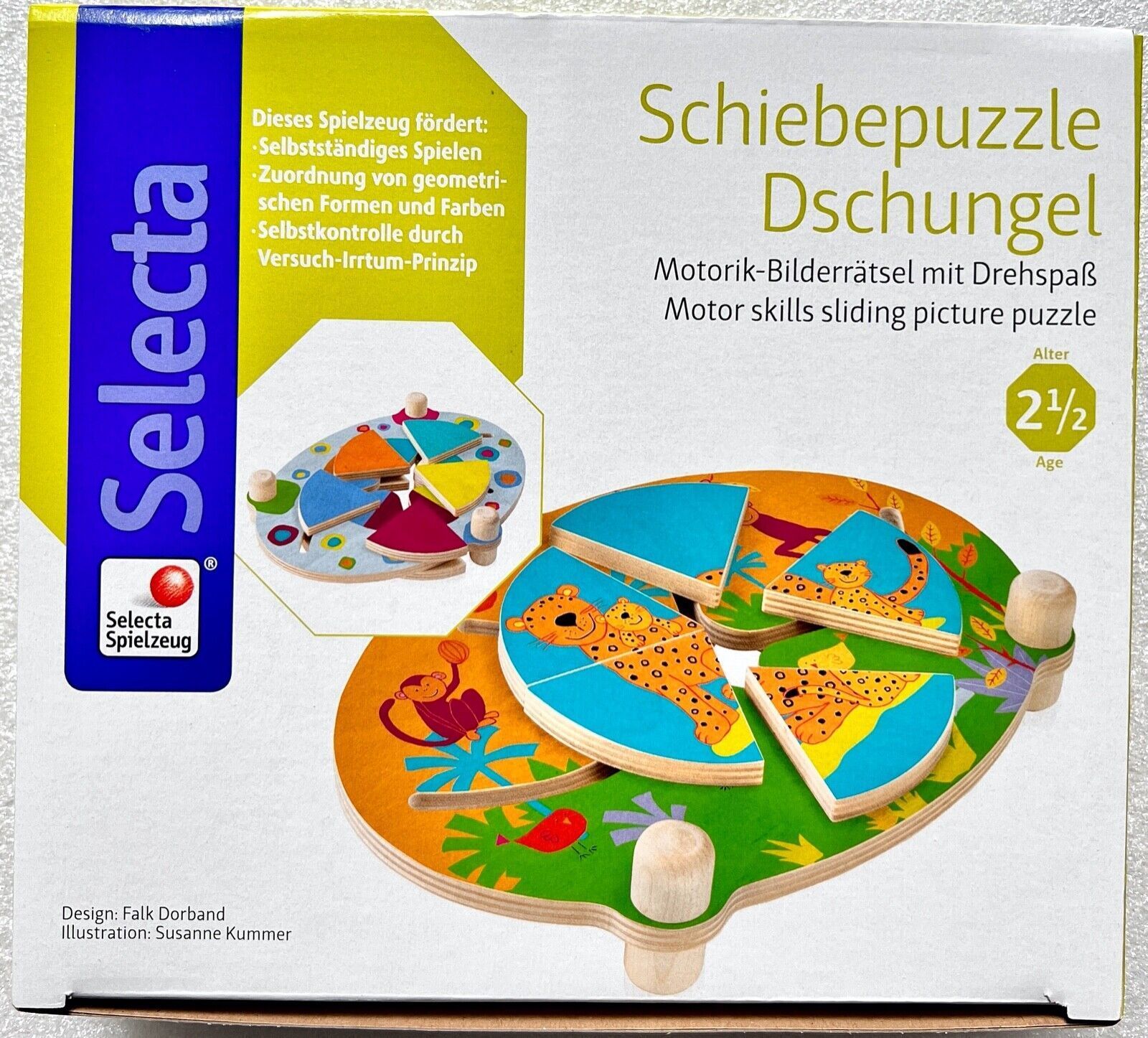 Selecta Kleinkind Schiebepuzzle Dschungel Lernspielzeug Holzspielzeug 62062 Neu