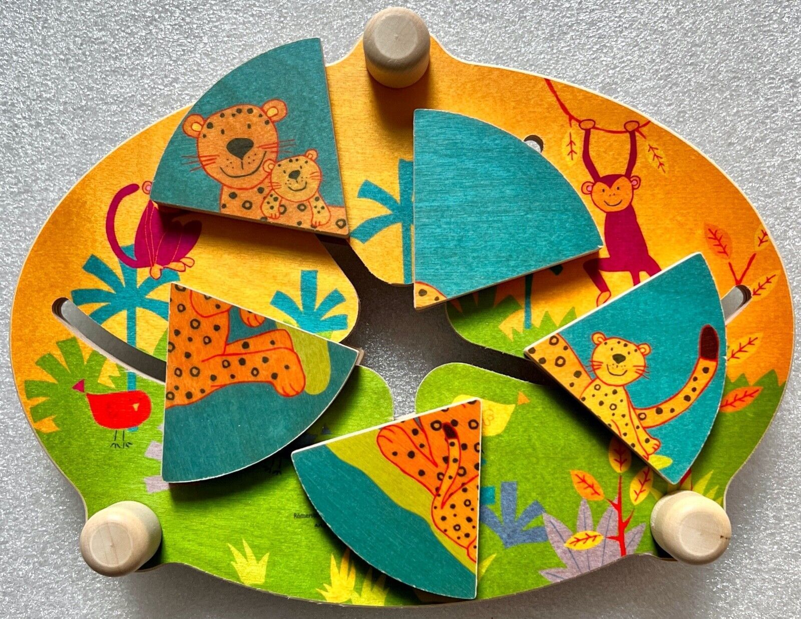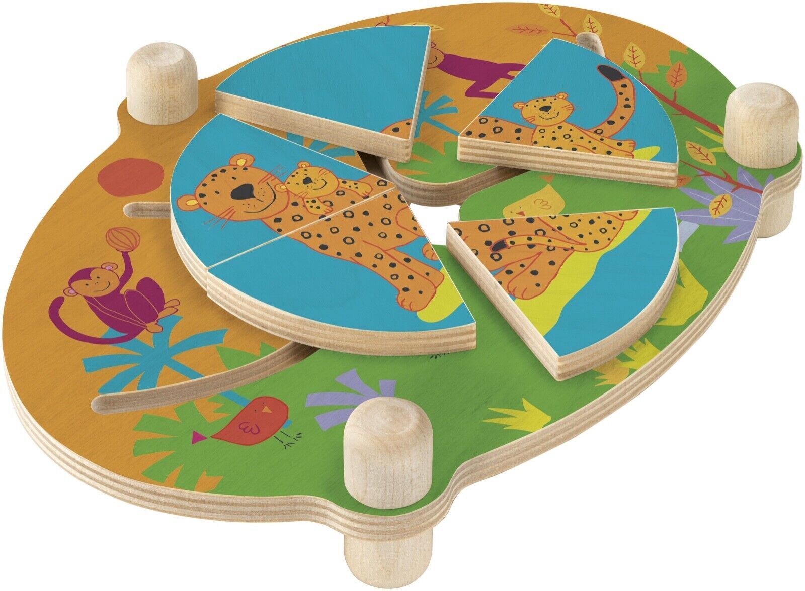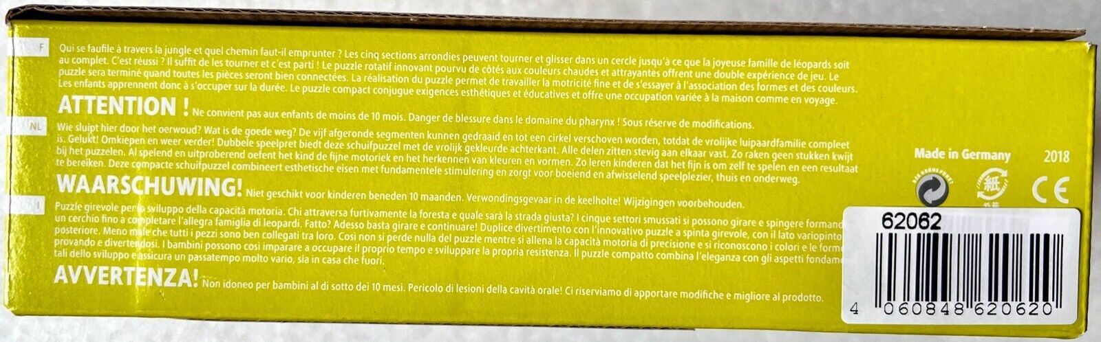 Spieleranzahl: 1 Spieler Altersempfehlung: ab 2,5 Jahre Schiebepuzzle Dschungel Schiebepuzzle Dschungel - Wer schleicht hier durch den Urwald und welcher Weg ist der richtigeEuro Die fünf abgerundeten Segmente lassen sich drehen und zu einem Kreis verschieben, bis die lustige Leopardenfamilie komple