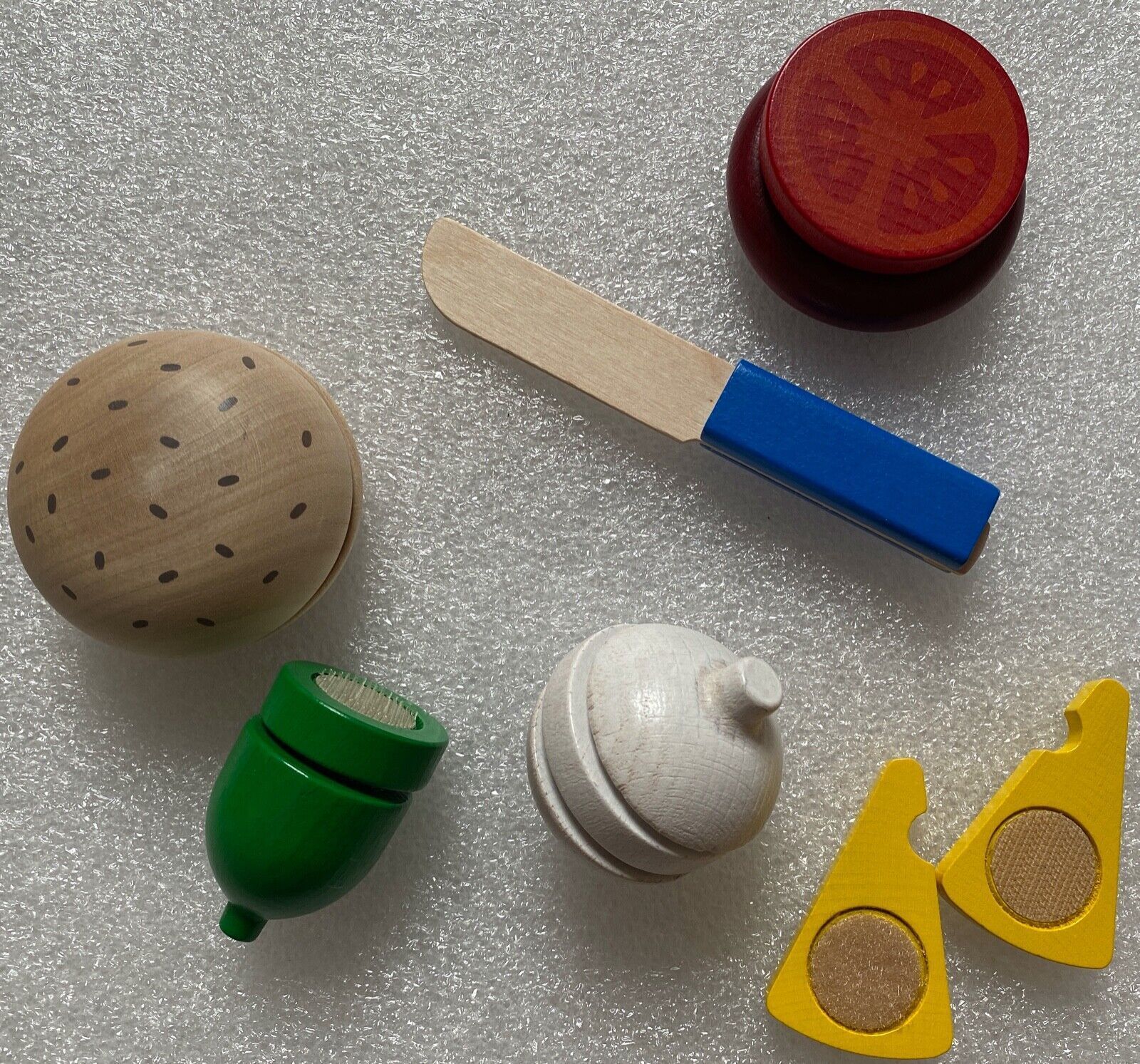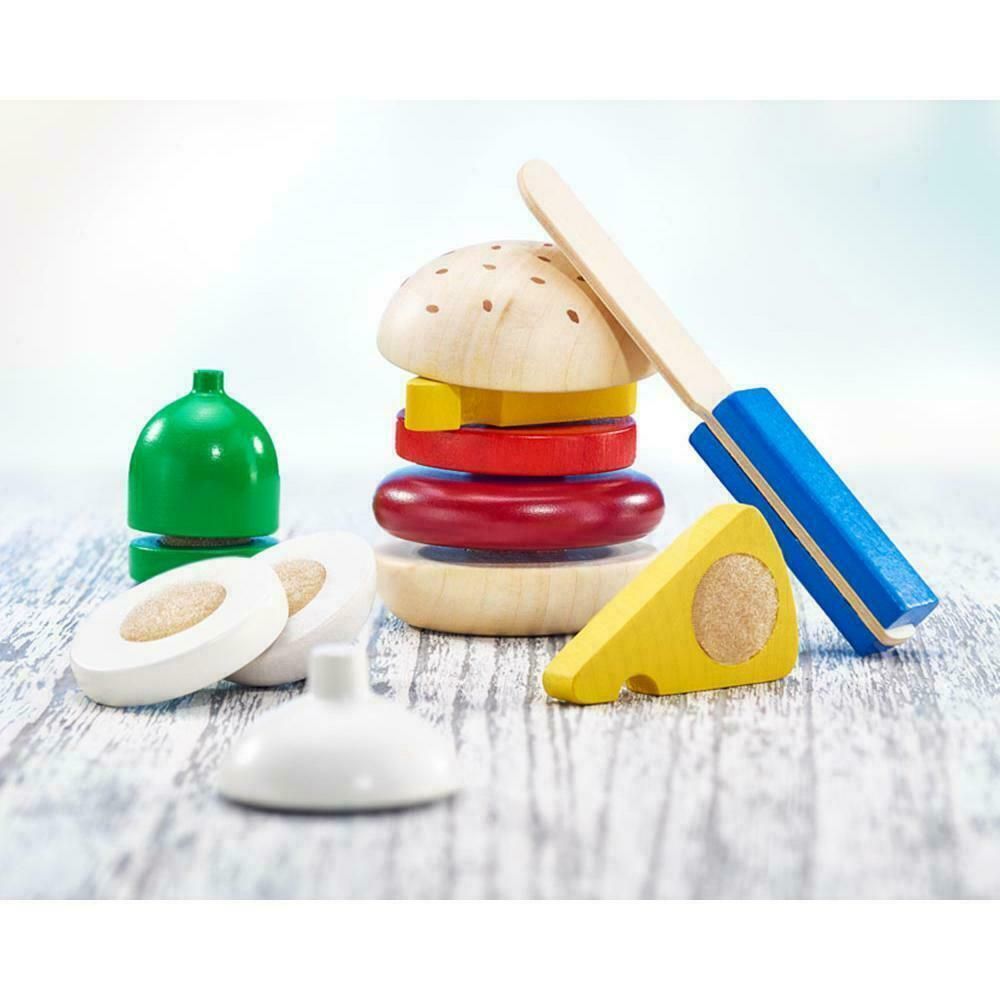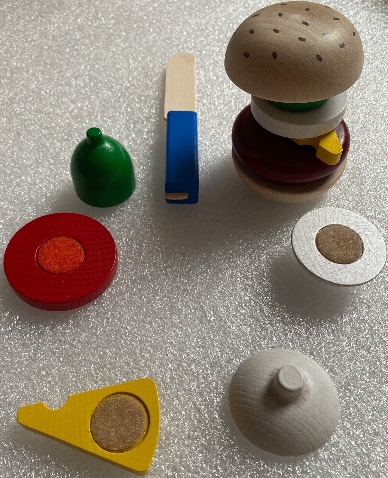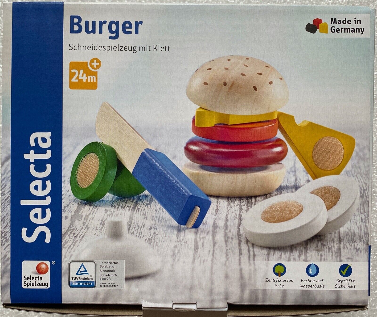 Selecta Kleinkindspiel Burger Motorikspielzeug Holzspielzeug 12 Teile Neu 62068