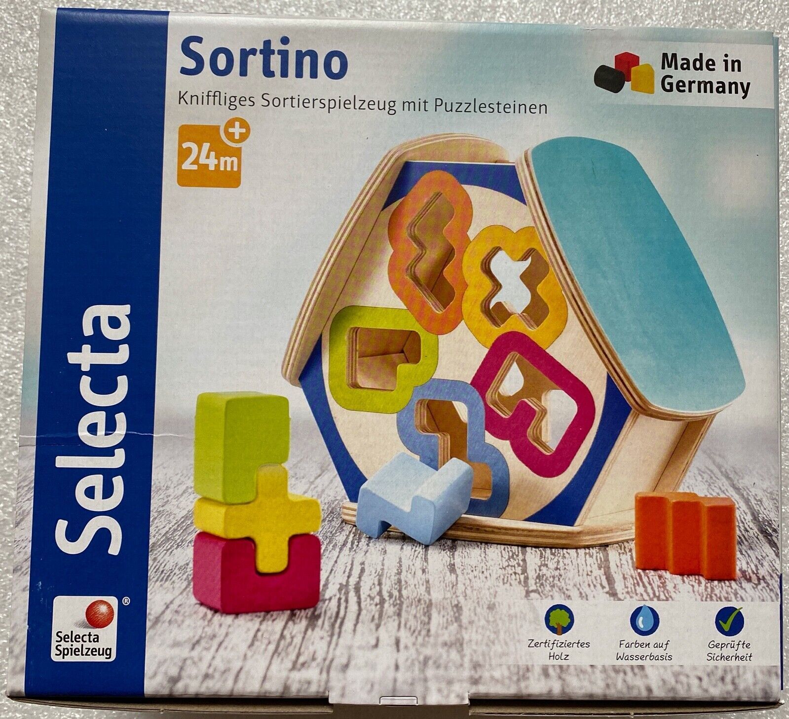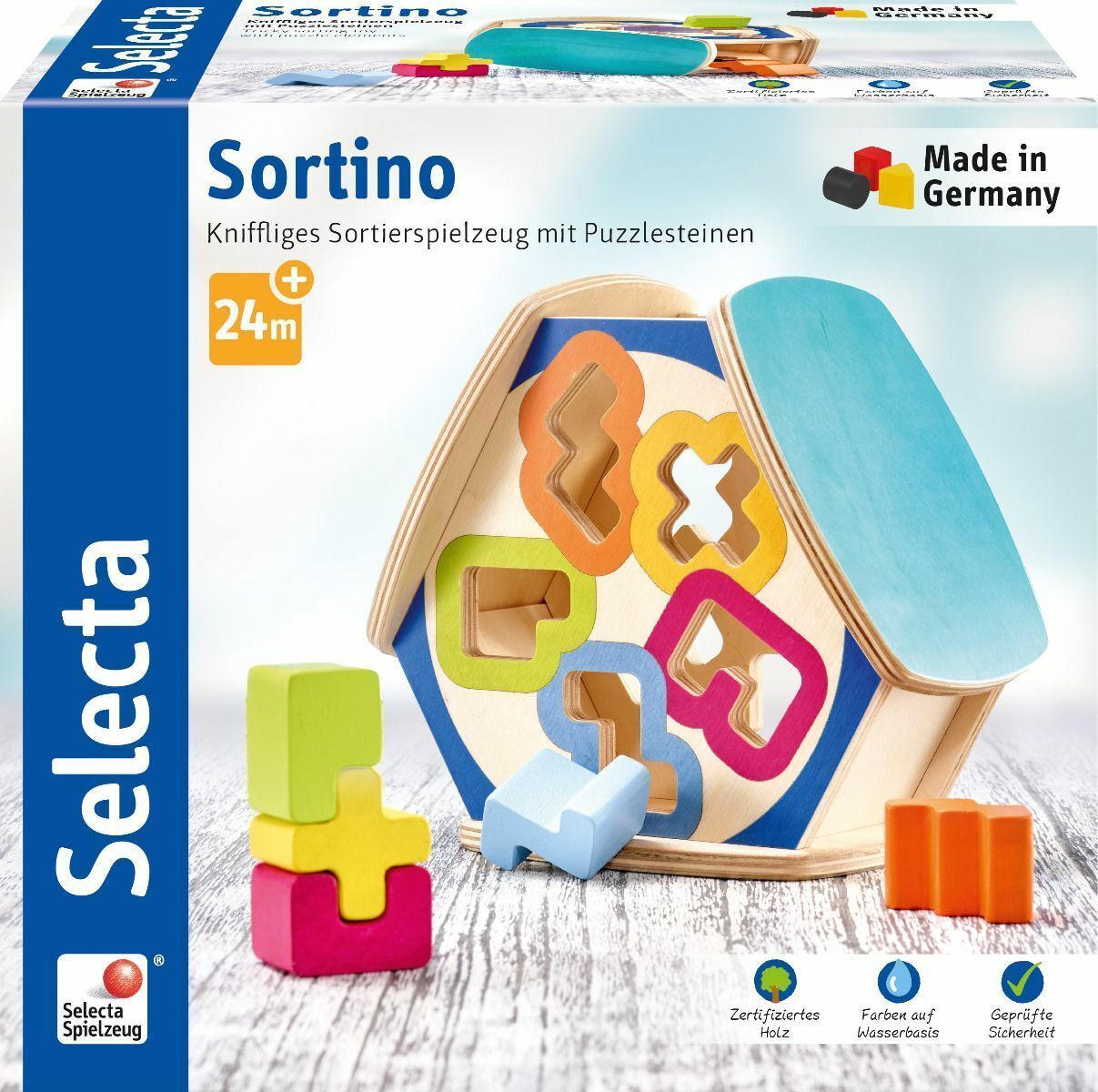 Selecta Kleinkindspiel Sortina Sortierbox Puzzlesteine Holzspielzeug Neu 62066