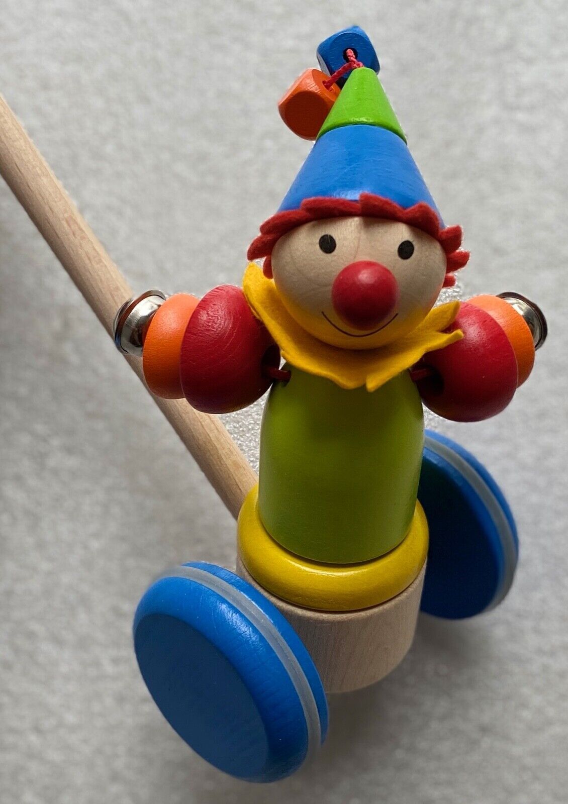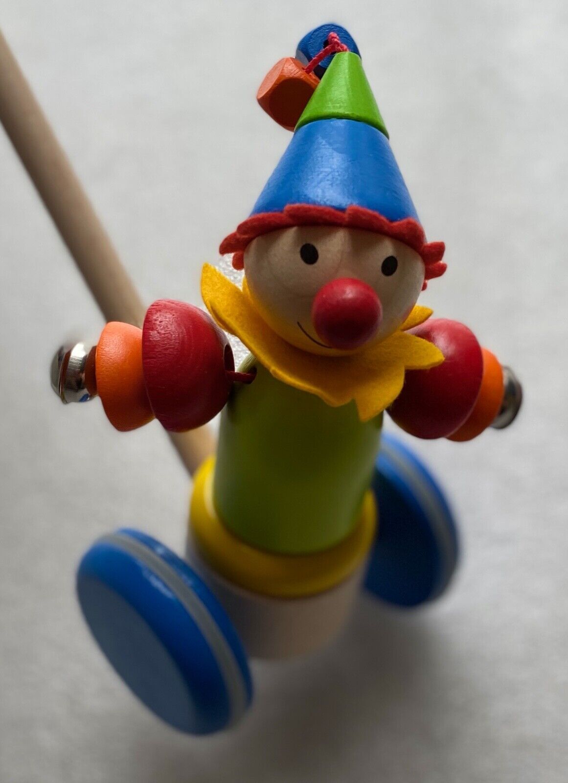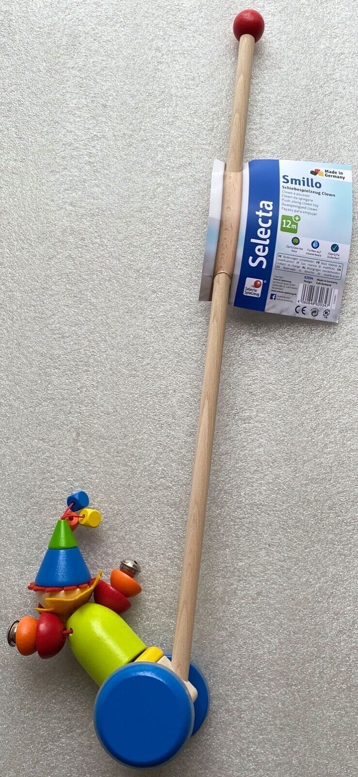 Selecta Kleinkindspielzeug Clown Smillo Schiebefigur Holzpielzeug Nachzieh 62034
