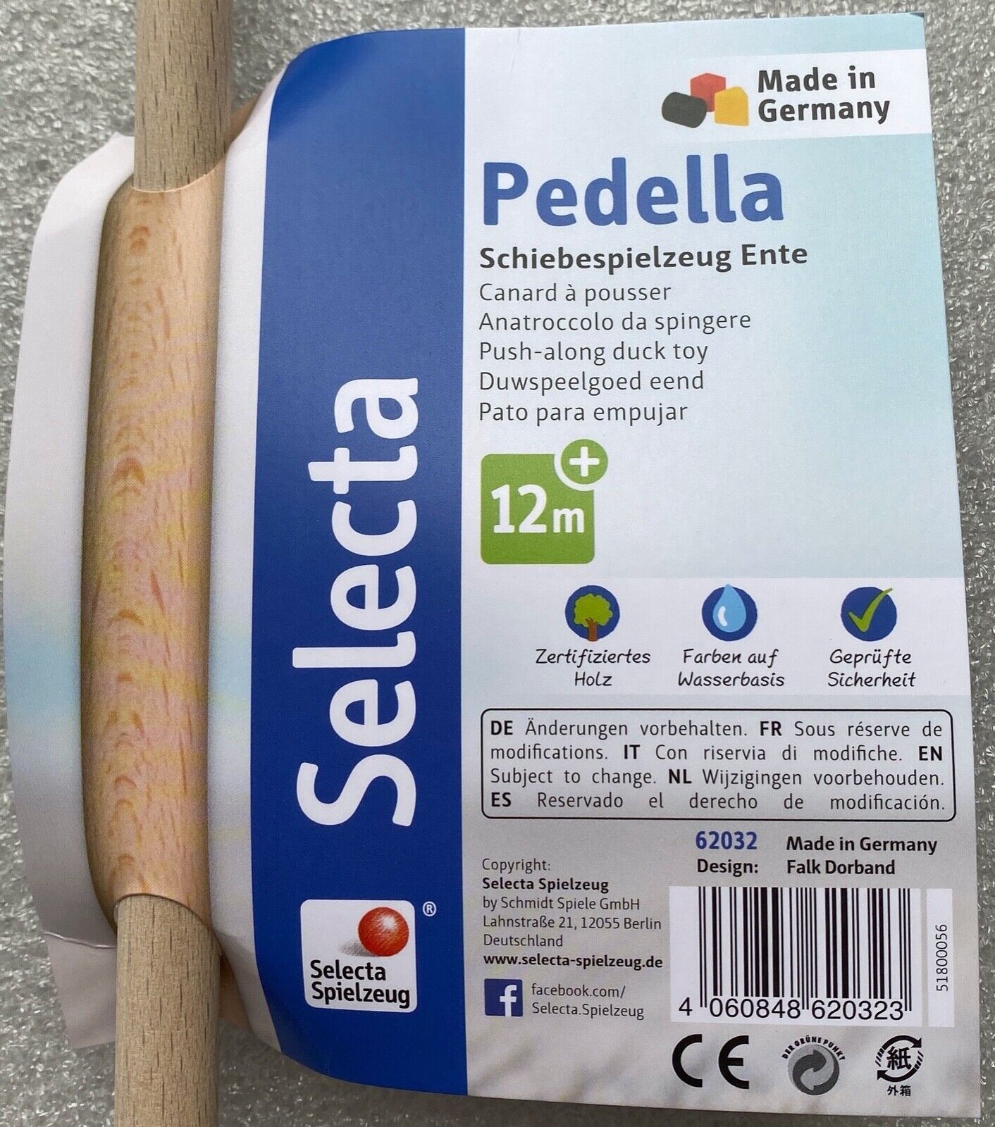 Selecta Kleinkindspielzeug Pedella Nachzieh- Schiebefigur Holzspielzeug 62032