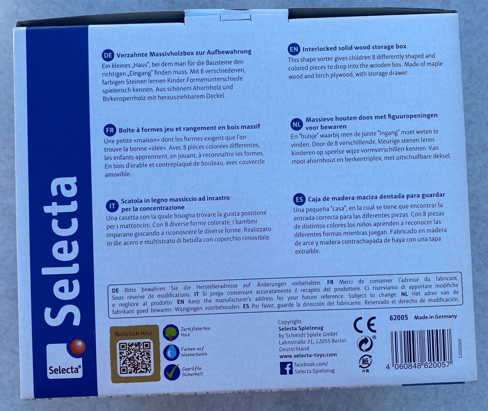 Selecta Kleinkindwelt Sortierbox Motorikspielzeug Bausteine Holzspielzeug 62005