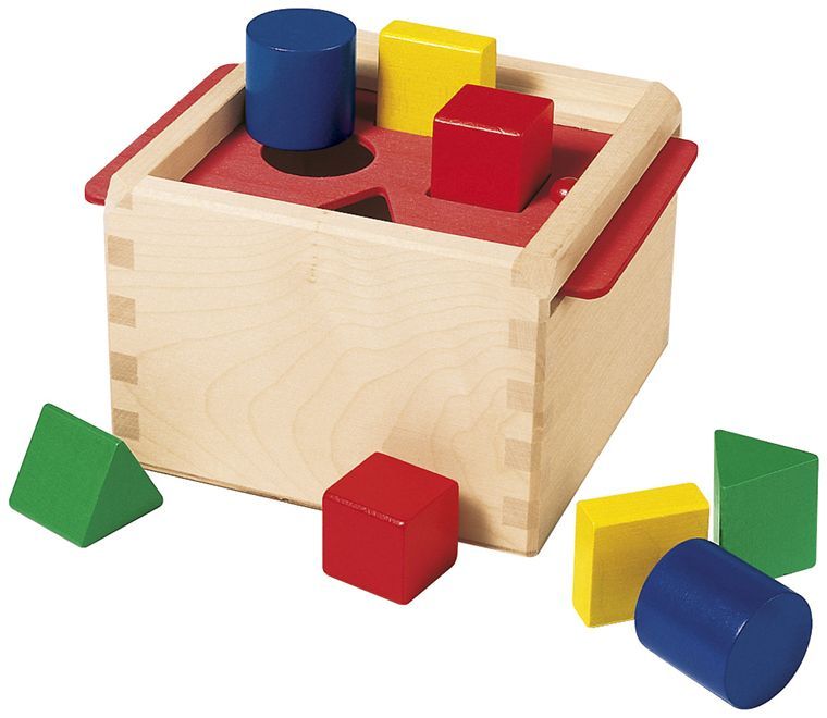 Spieleranzahl: 1 Spieler Altersempfehlung: ab 12 Monaten Sortierbox Ein kleines Haus, bei dem man für die Bausteine den richtigen Eingang finden muss. Das Platzieren der geometrischen Formen in die passenden ausgefrästen Öffnungen fördert das logische und strukturelle Denken. Mit 8 verschiedenen, fa