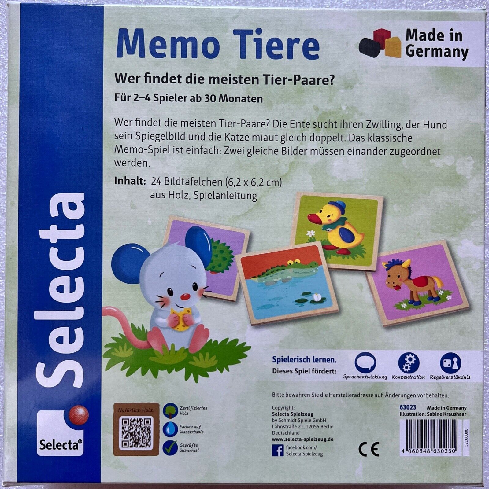 Selecta Spiel & Puzzle Memo Tiere Legespiel Holzspielzeug Kinderspielzeug 63023