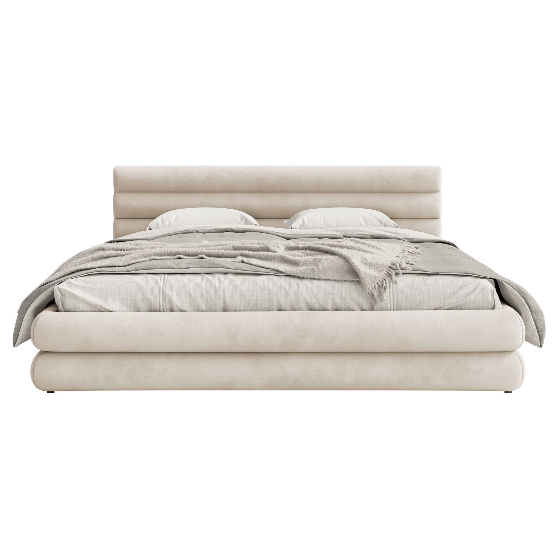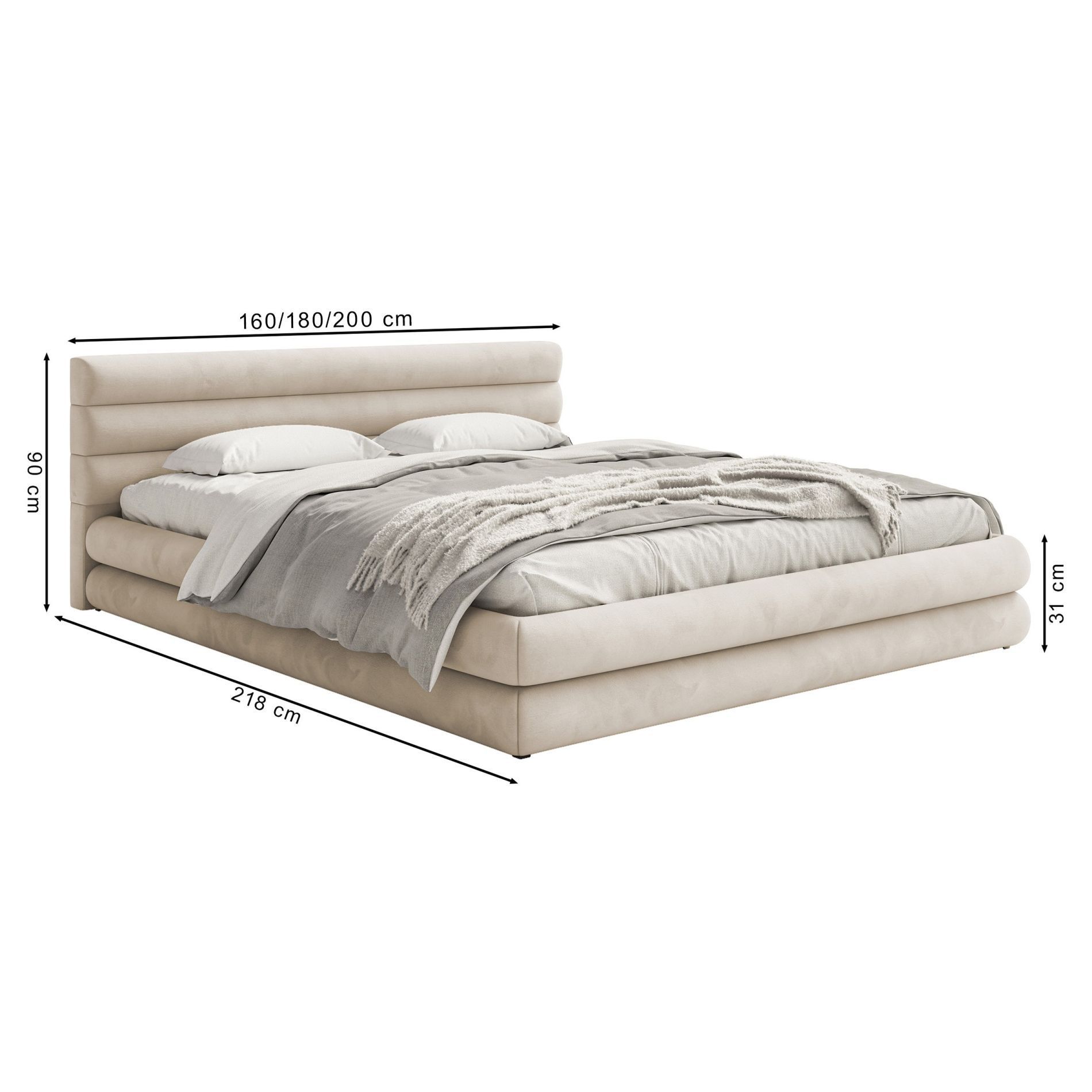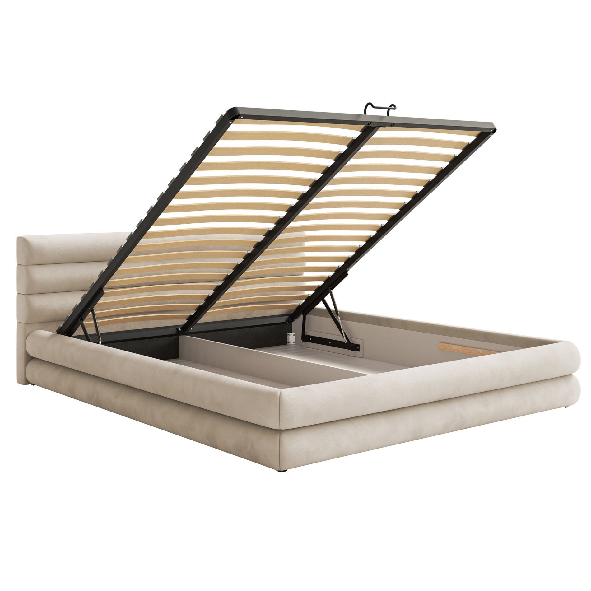 Selsey ALEGRE - Polsterbett mit wasserfestem Samtbezug und Stauraum, Hellbeige, 140x2