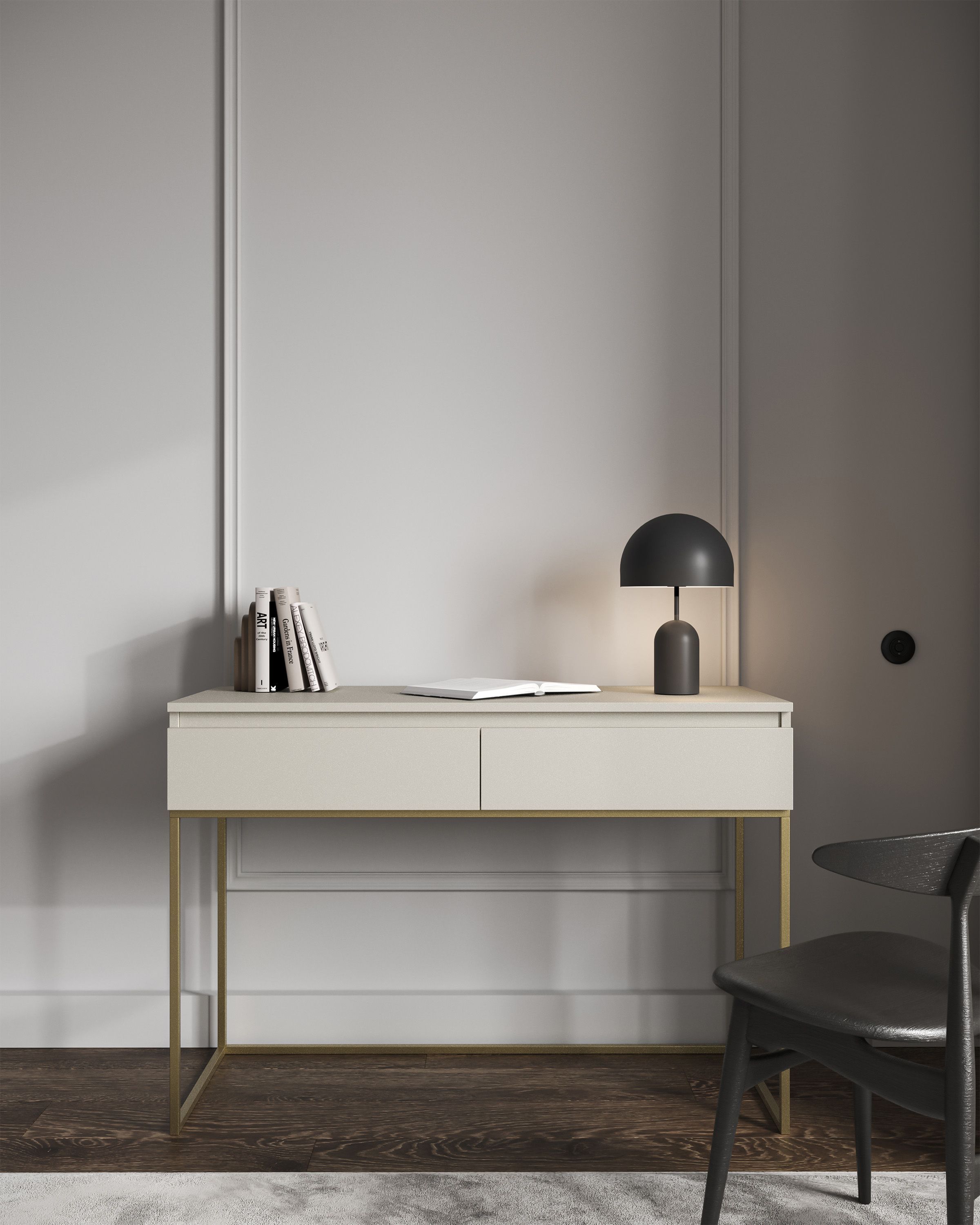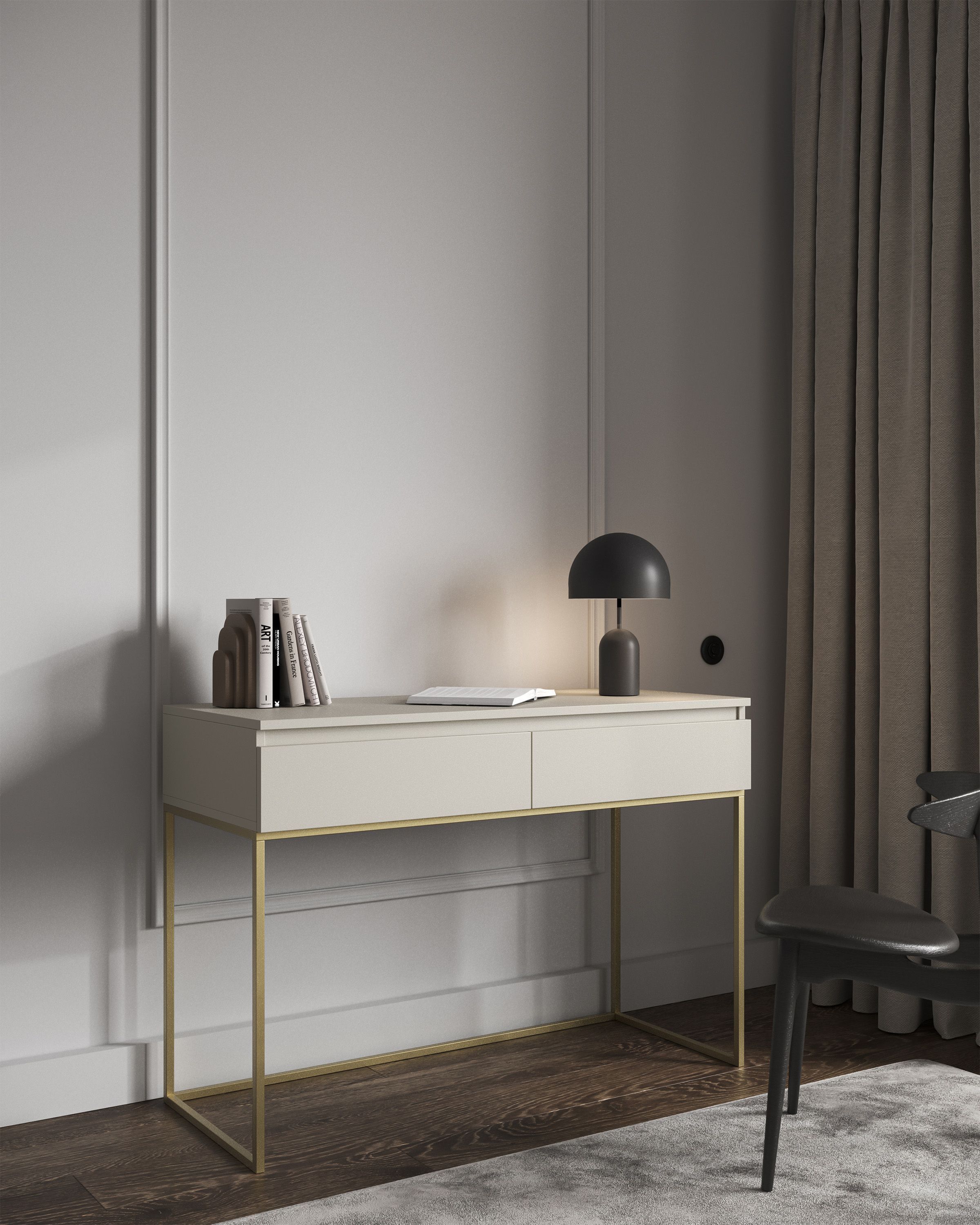 Selsey Bemmi - Schminktisch, Graubeige mit goldenem Metallgestell, 120 cm
