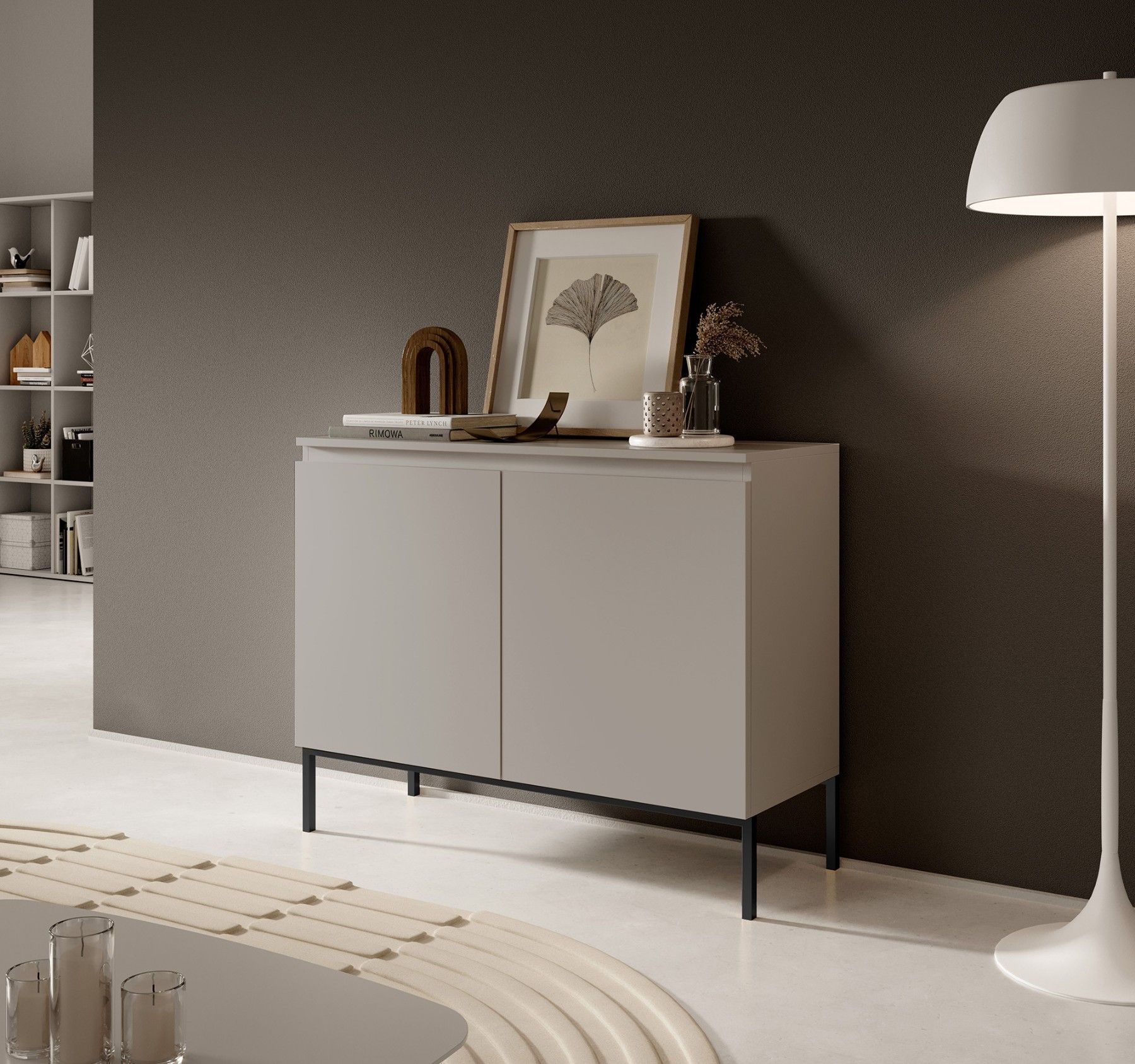 Selsey Bemmi - Sideboard Kommode 2-trig, Beige mit schwarzen Beinen, 100 cm