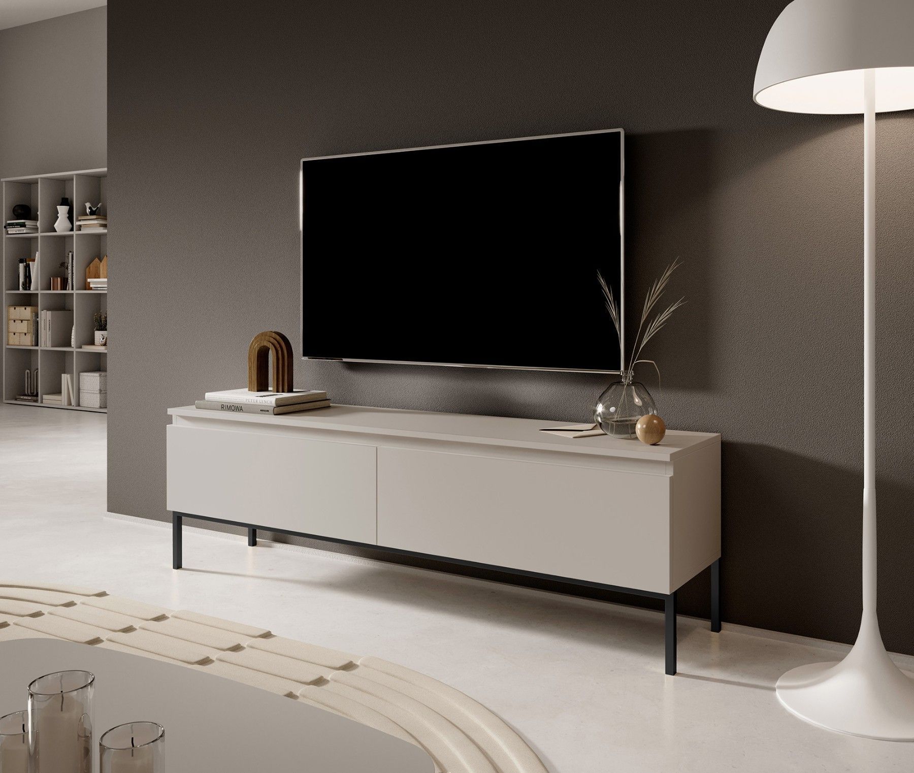 Selsey Bemmi - TV-Schrank Lowboard, Beige mit schwarzen Beinen, 150 cm