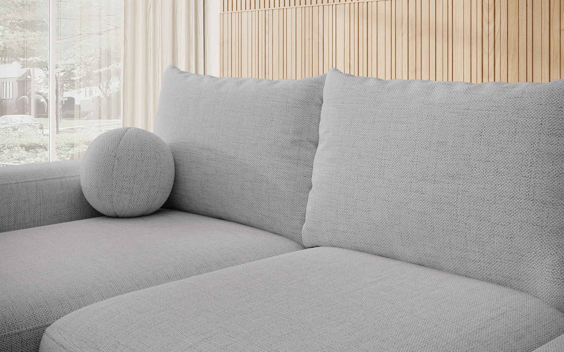 Das L-Sofa Carnos überzeugt mit klarer Form, hohem Sitzkomfort und praktischen Funktionen - ideal für alle, die ein bequemes und gleichzeitig alltagstaugliches Möbelstück suchen. Die weich abgerundete Formgebung und der strapazierfähige Chenille-Bezug verleihen dem Sofa eine schlichte, moderne Ausst