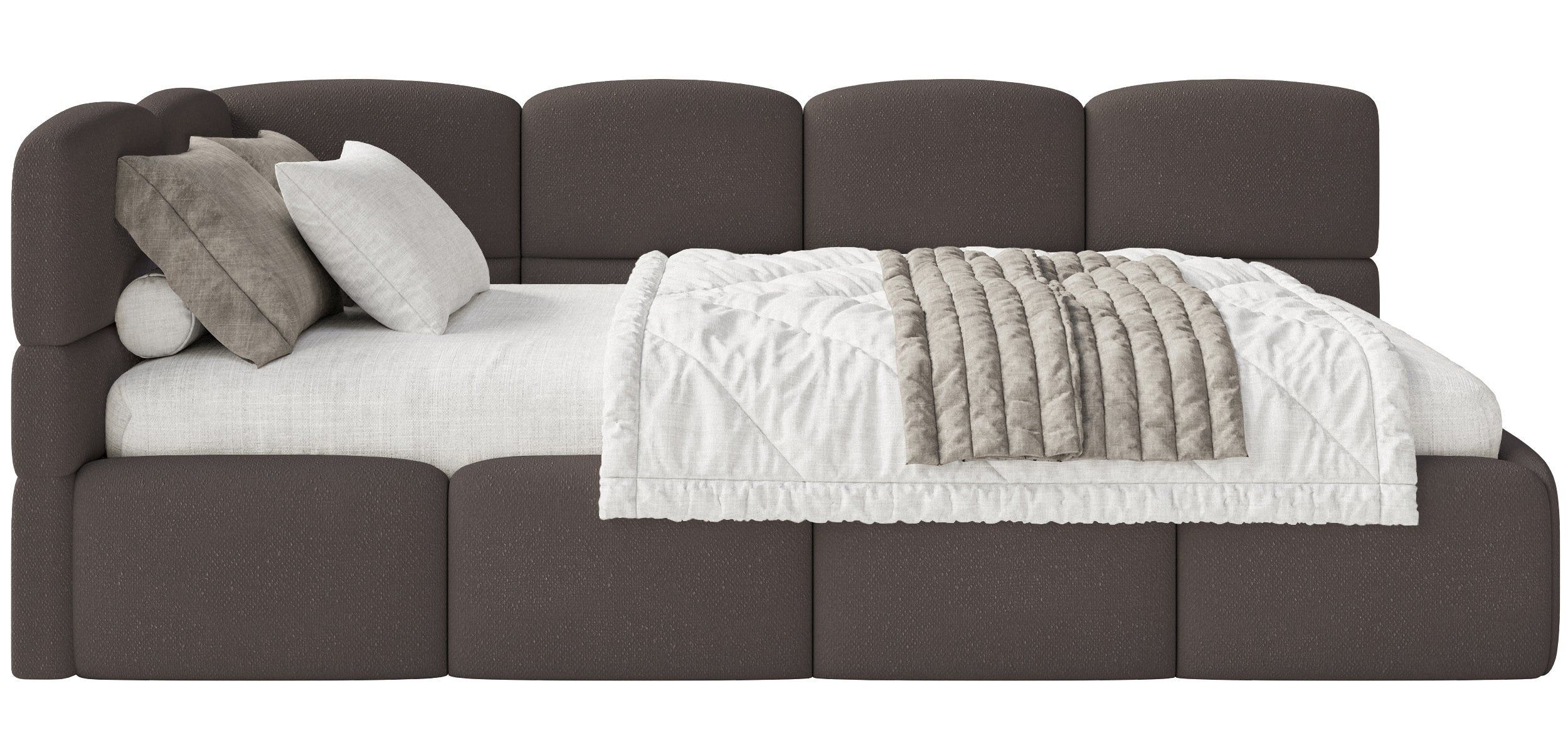 Selsey Cloudy - Jugendbett 120 cm, Bettkasten, Chenille, Kopfteil links, Braun