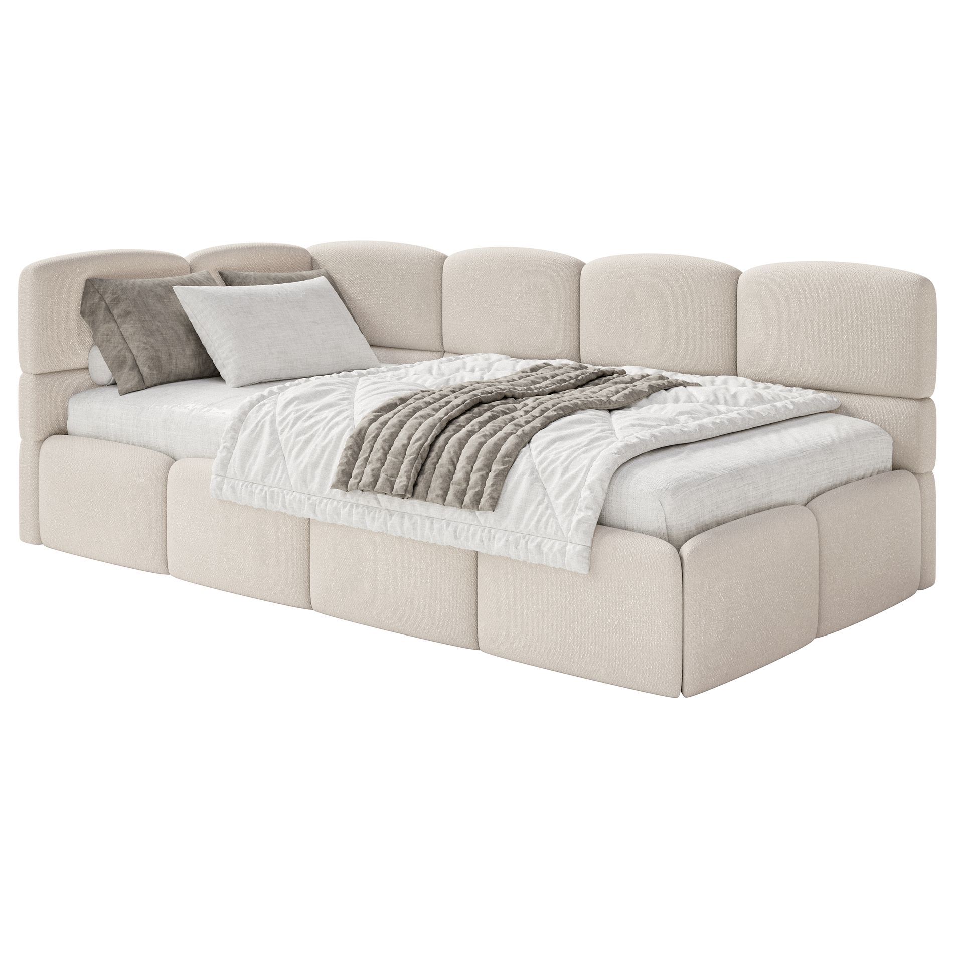 Selsey Cloudy - Jugendbett 120x200, Kopfteil links, Matratze & Bettkasten, Chenille C