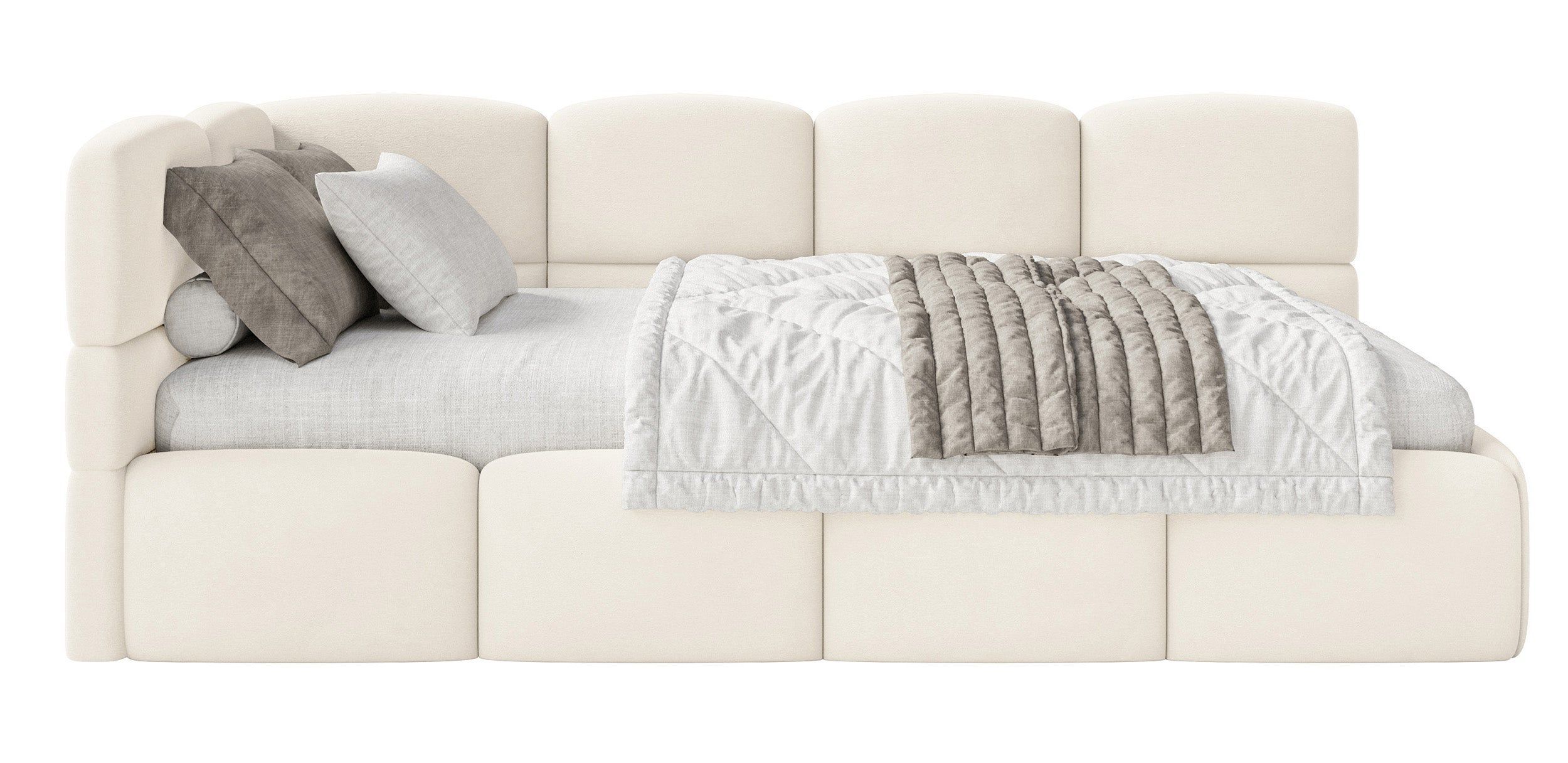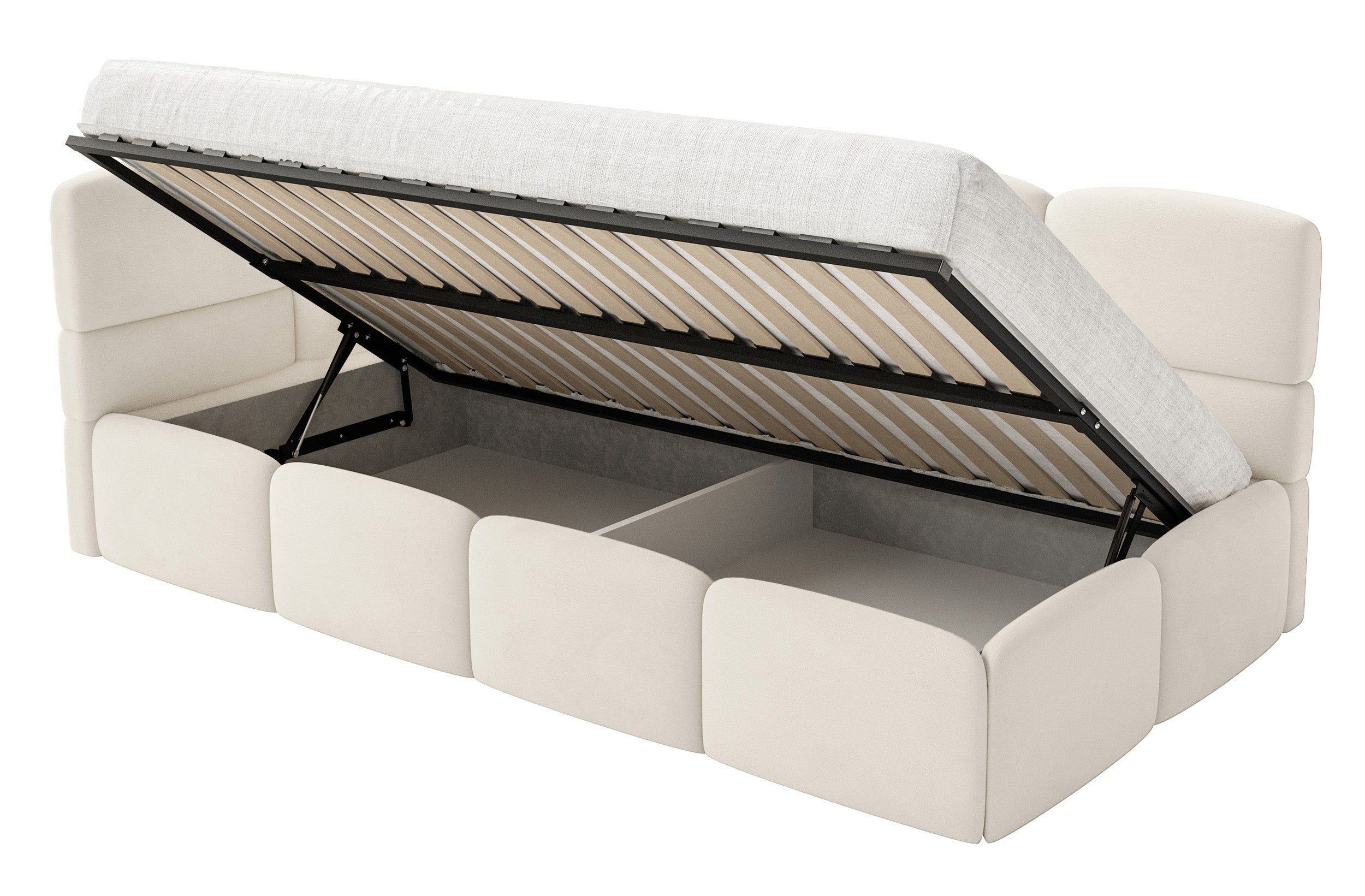 Selsey Cloudy - Jugendbett 120x200, Kopfteil links, Matratze & Bettkasten, Samt Creme