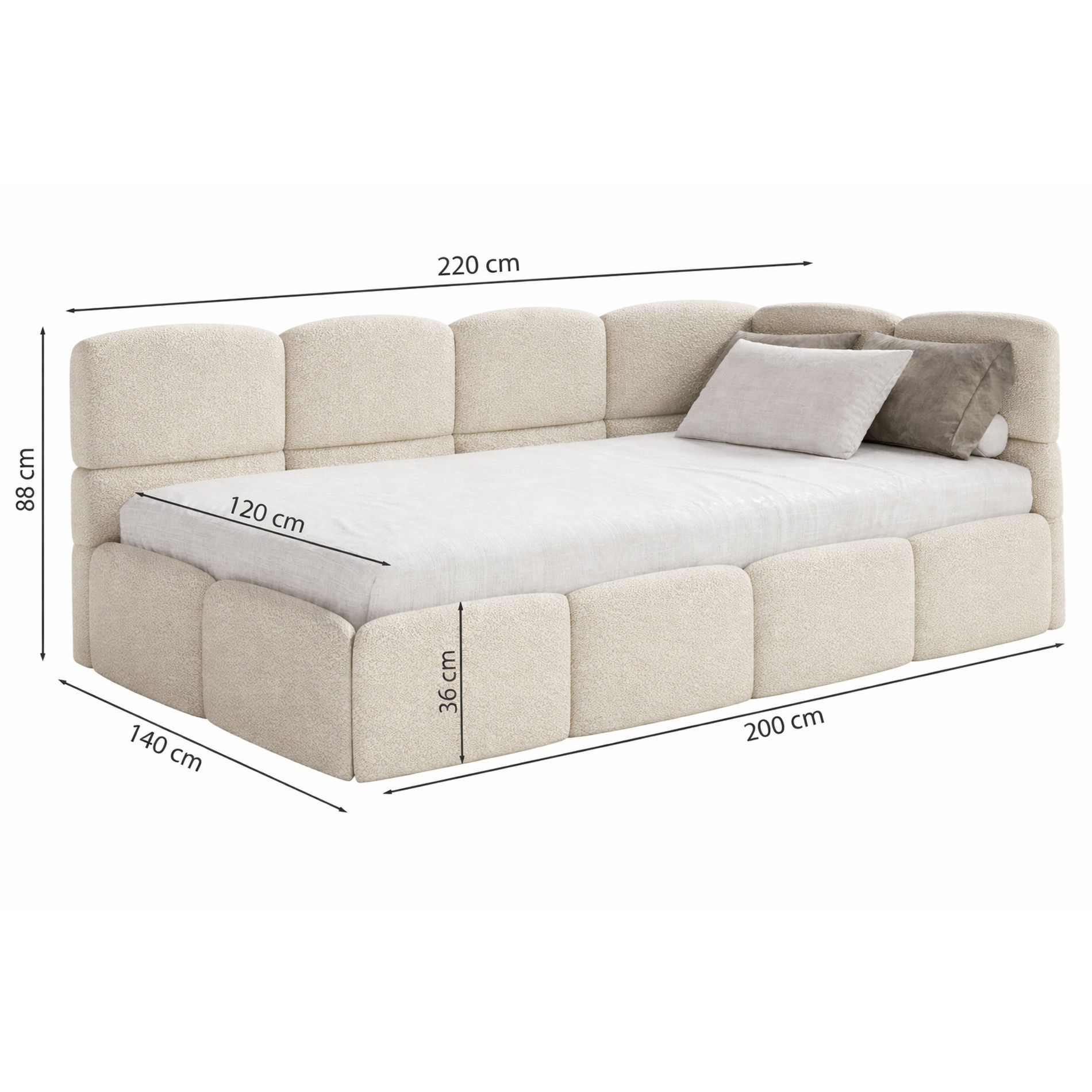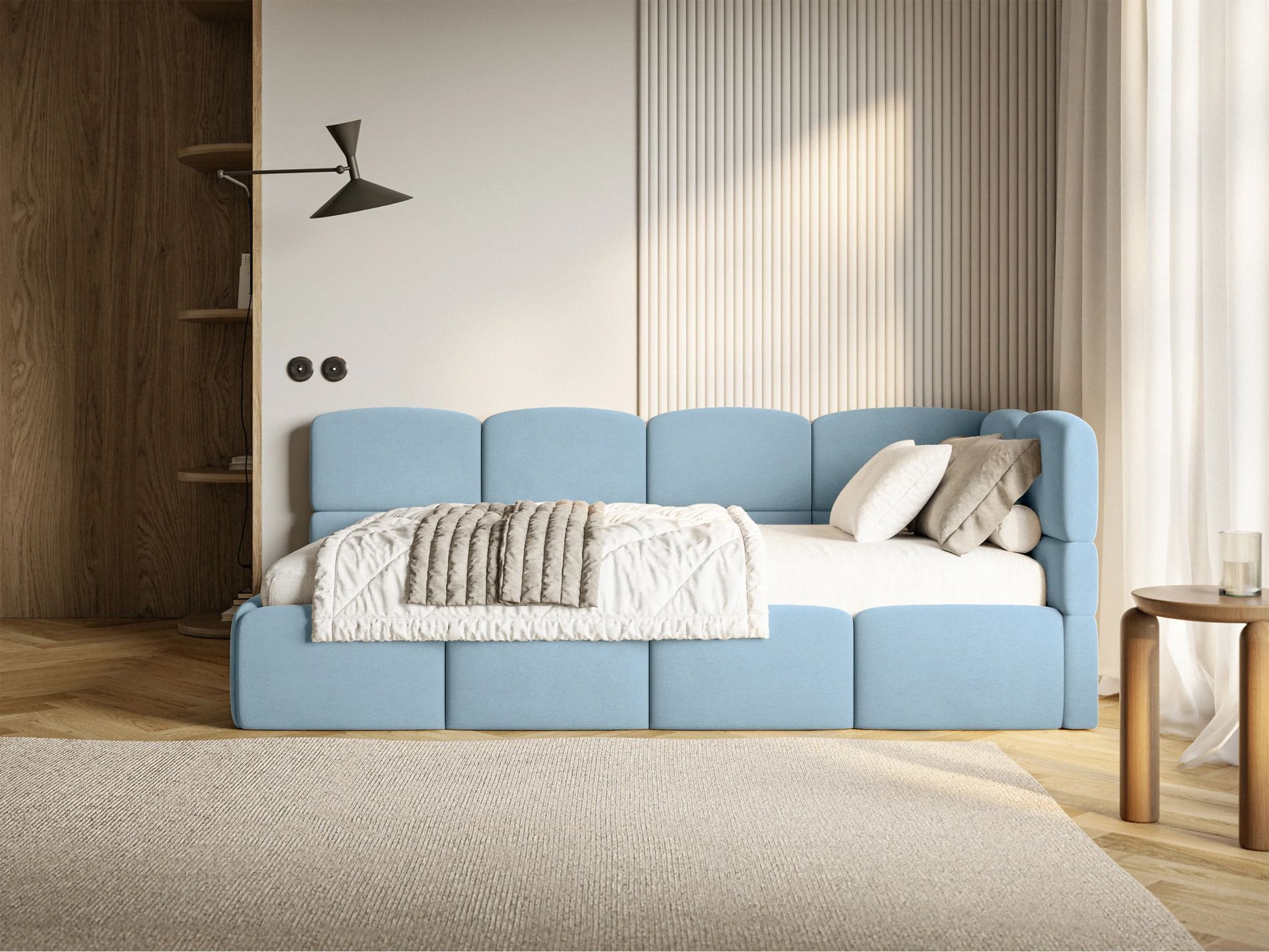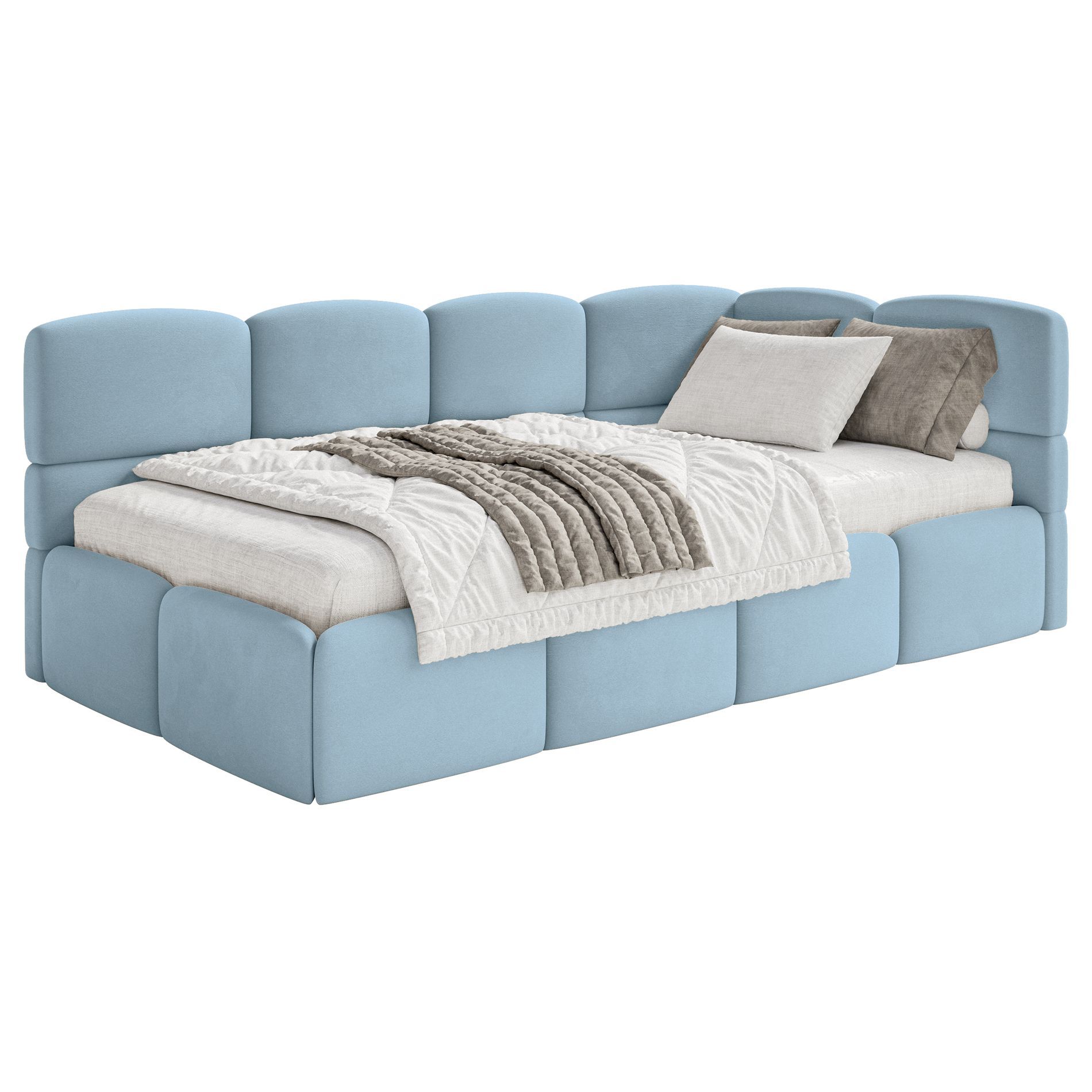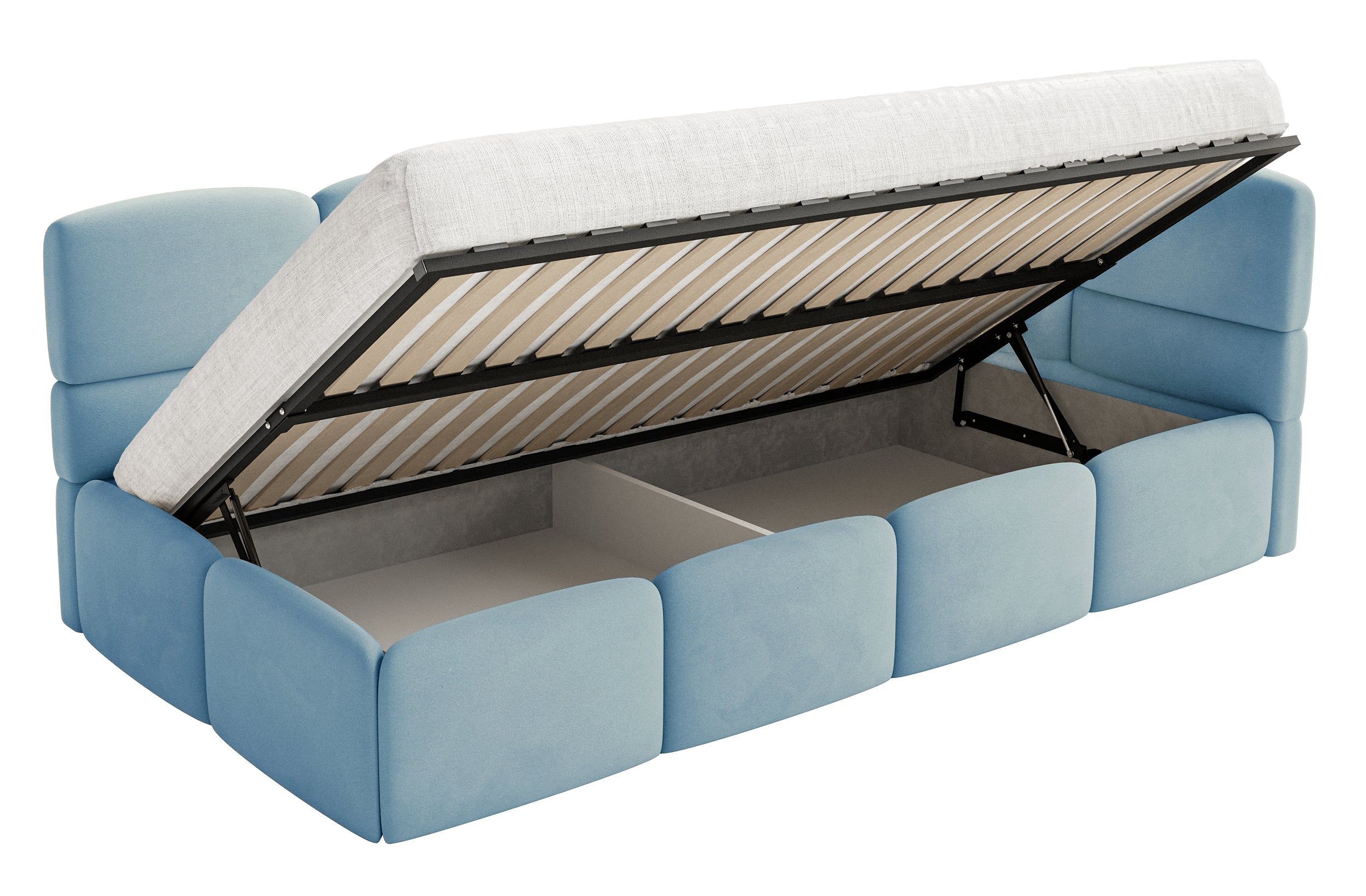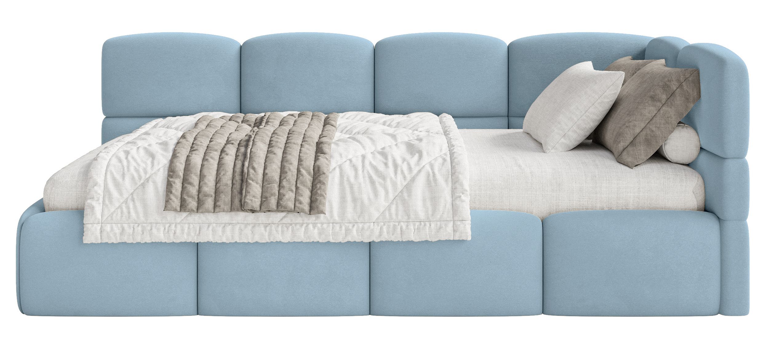 Selsey Cloudy - Jugendbett 120x200, Kopfteil rechts, Matratze & Bettkasten, Samt Hell