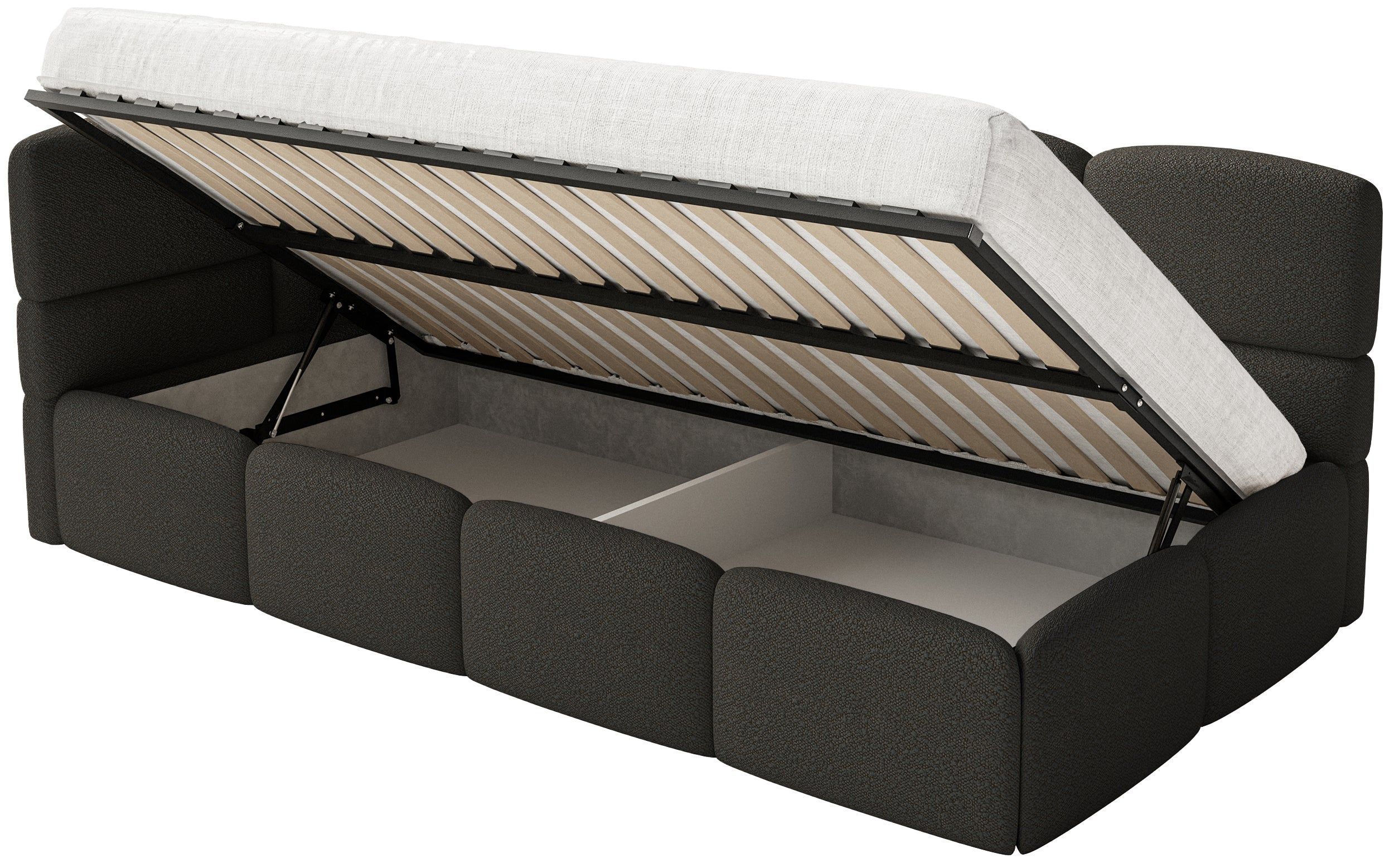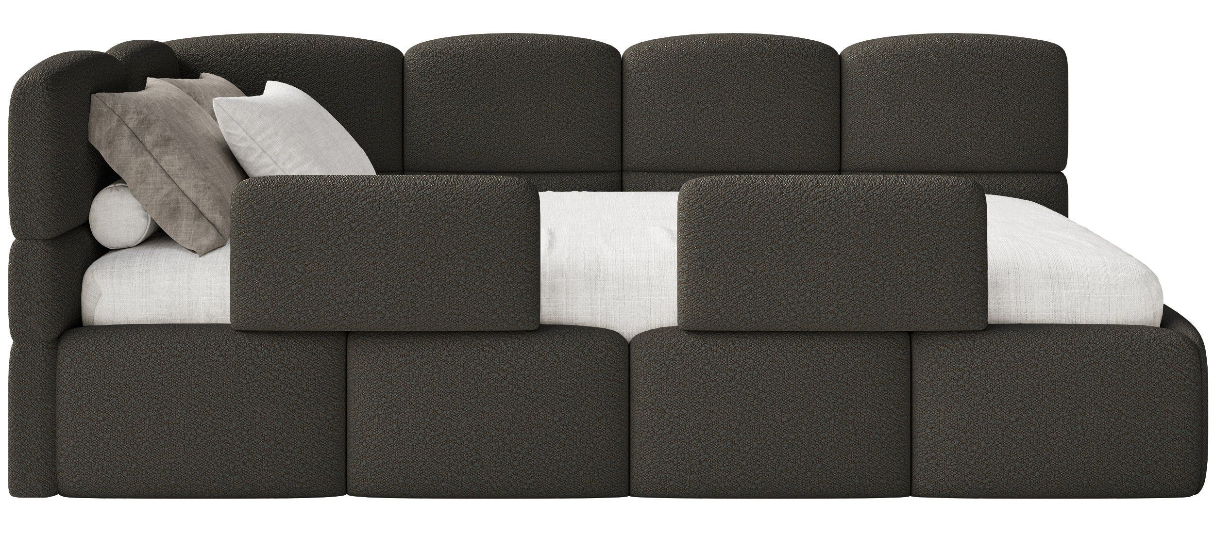 Selsey Cloudy - Kinderbett 120 cm, Bettkasten, 2x Rausfallschutz, Bouclé, links, Brau