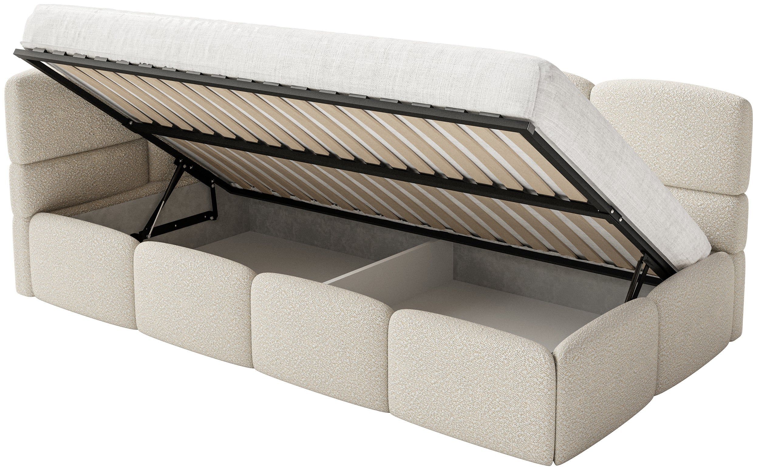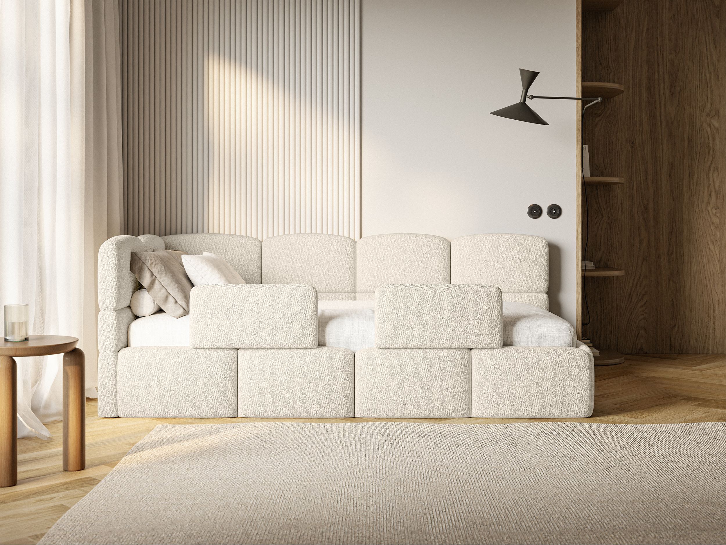 Selsey Cloudy - Kinderbett 120 cm, Bettkasten, 2x Rausfallschutz, Bouclé, links, Hell