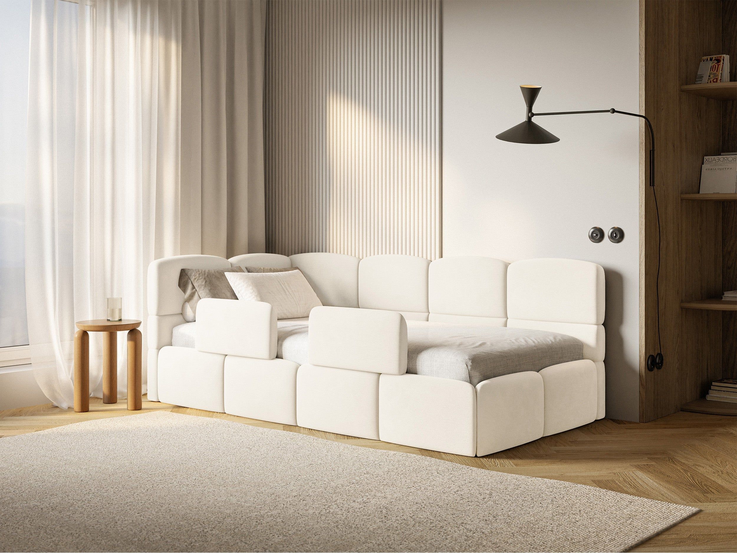 Selsey Cloudy - Kinderbett 120x200, Kopfteil links, Matratze & Bettkasten, Samt Creme