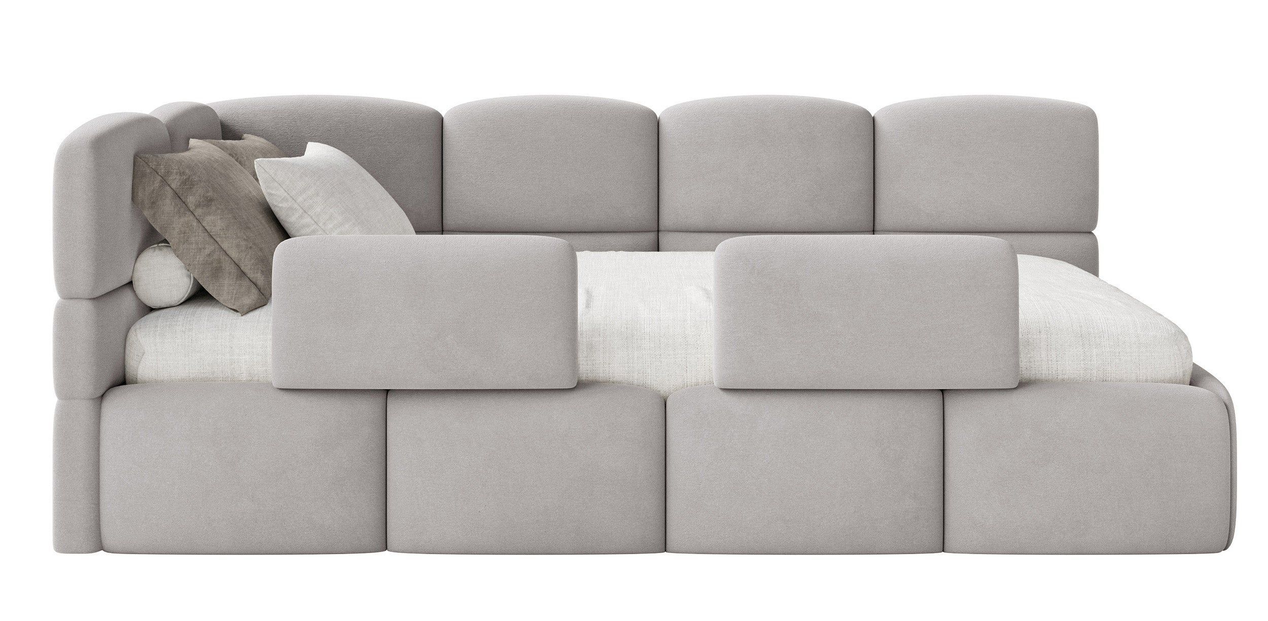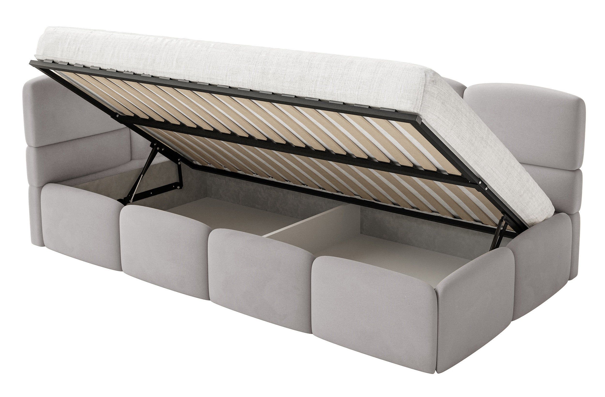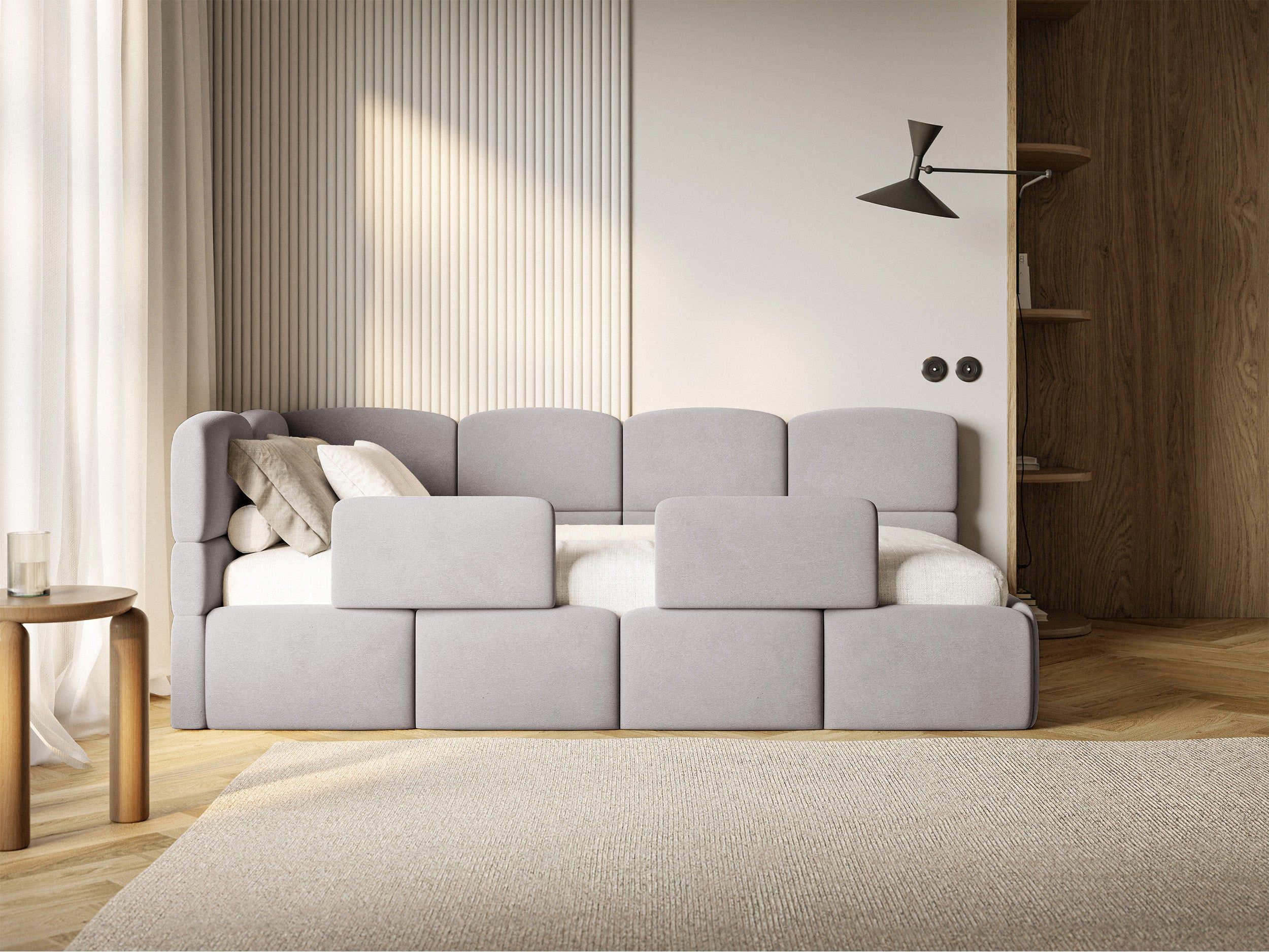 Selsey Cloudy - Kinderbett 120x200, Kopfteil links, Matratze & Bettkasten, Samt Hellg