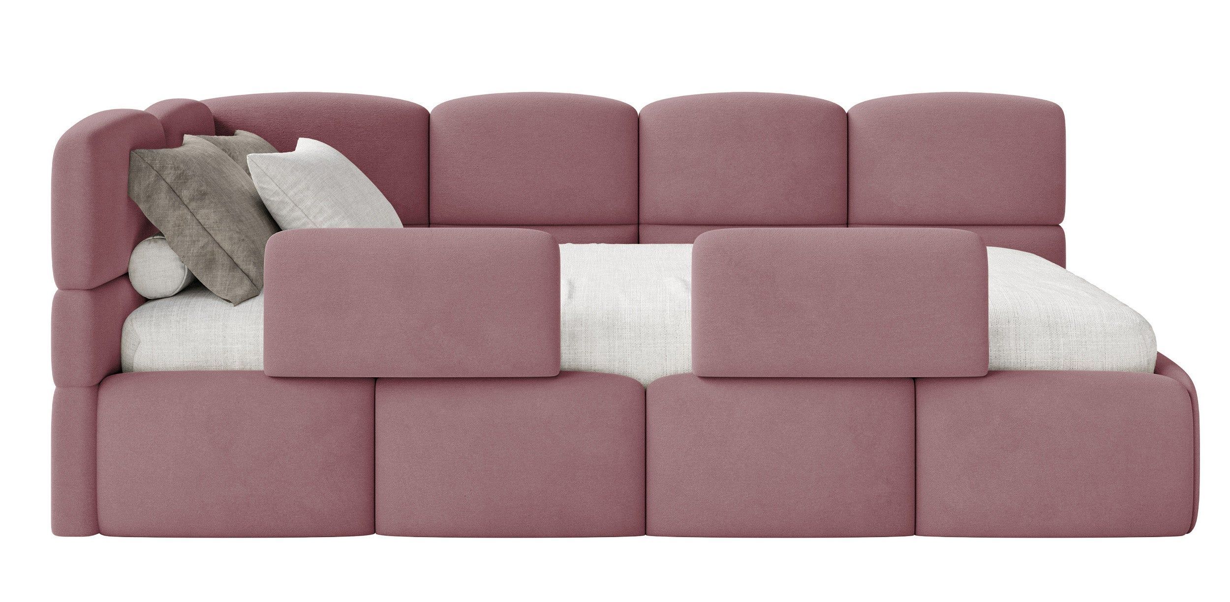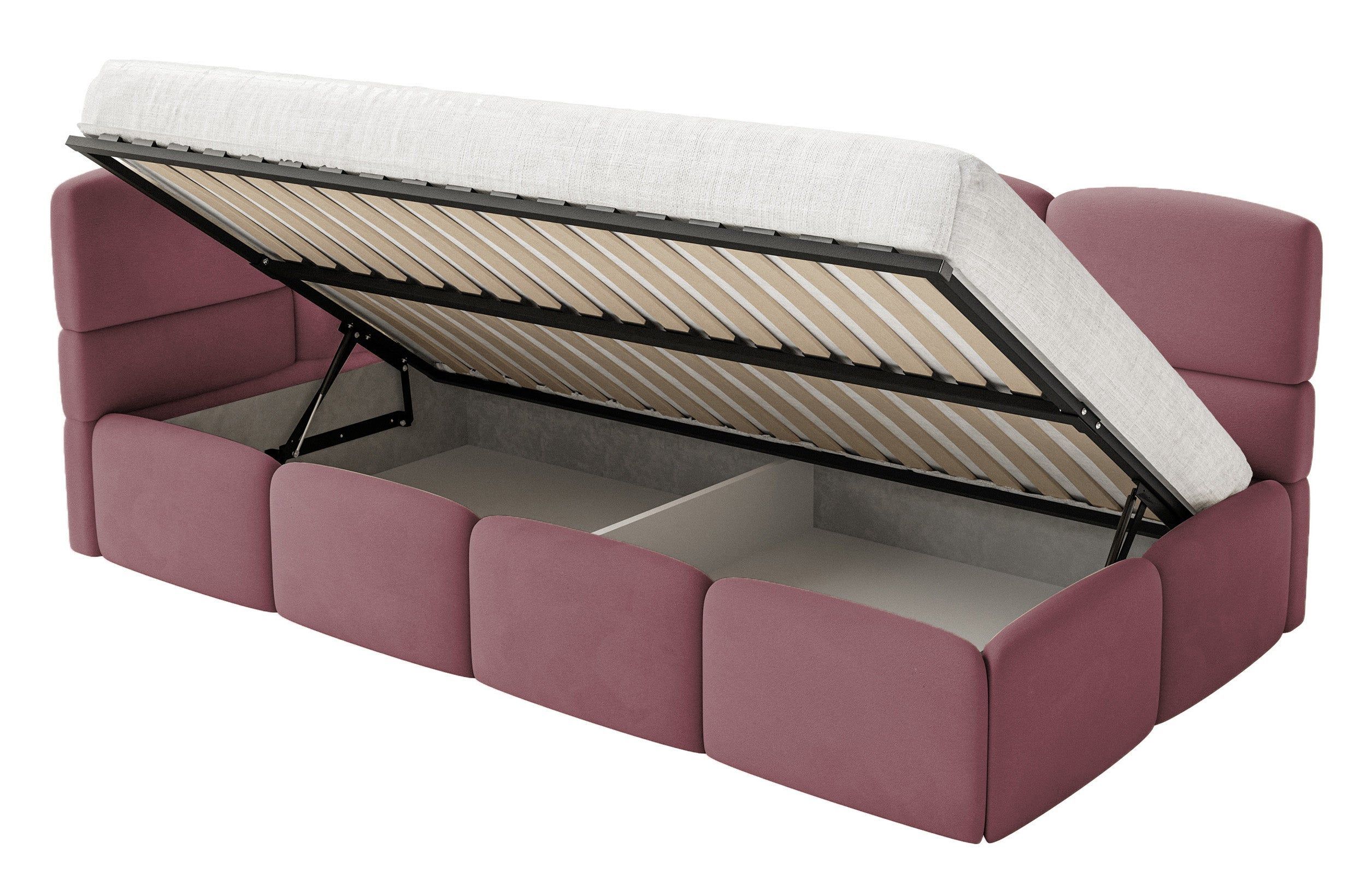 Selsey Cloudy - Kinderbett 120x200, Kopfteil links, Matratze & Bettkasten, Samt Rosa